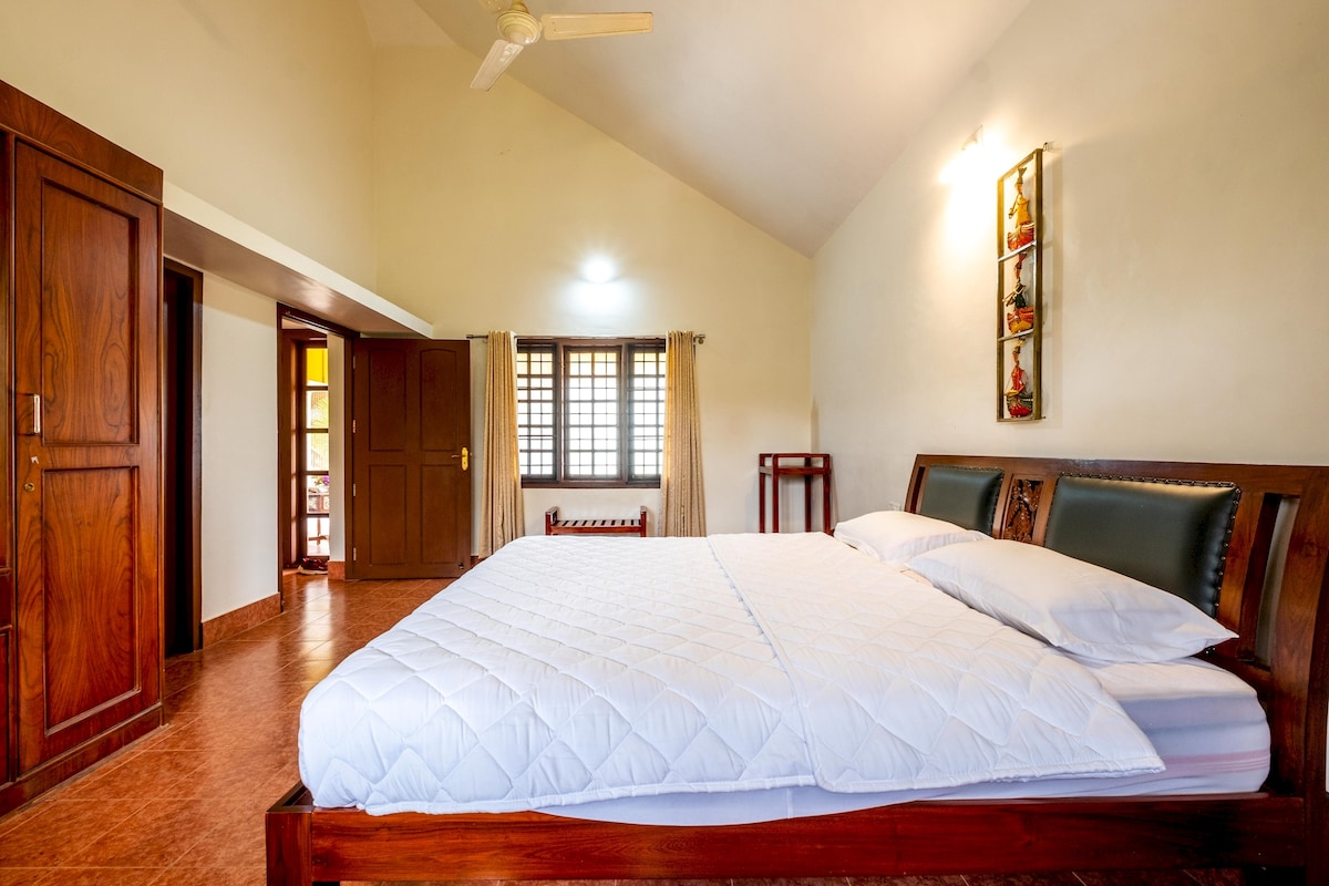 A traditional 4BHK house, set midst a 100-acre coffee estate being taken care of by the family for 4 generations, 6 kms from Bankal. The aesthetic and well-managed property offers you and your family a plethora of recreational activities .We therefore provide a home with a large, open area. You will be delighted by the area, Immerse yourself in everything, from guided plantation tours to exploring nearby waterfalls, all with the company of friendly locals. Enjoy your Stay with us!