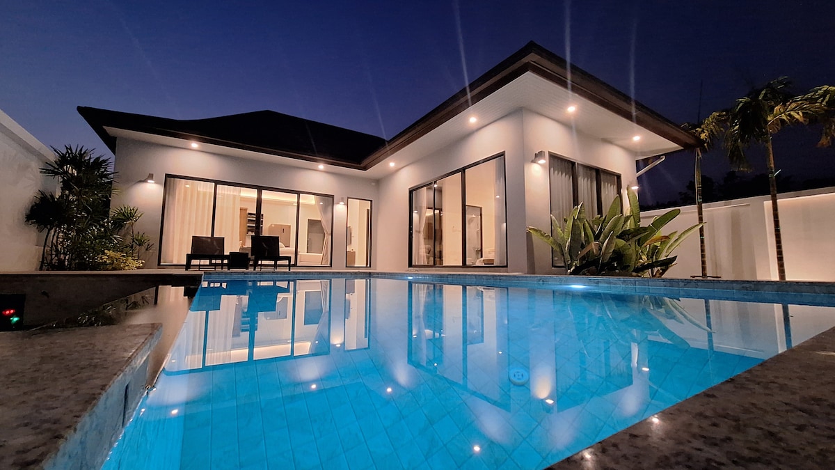 #Our Newly Renovated private pool villa is located less than a 5 minute drive from the beach. We do our best to go above and beyond for our guest. You will be treated to a complimentary bottle of wine, and our personal caretaker for your entire stay. The interior of the house was recently redesigned by a renowned local designer and is a beautiful fusion of Thai and Western Styles, seamlessly merging the two.