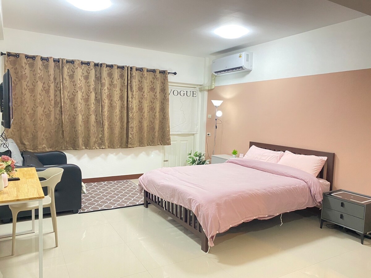 Charming 1BR condo just 500m from the BTS Skytrain! Simply decorated with love, it features a double bed, table, bathroom, and aircon. Easily explore Bangkok with the nearby BTS, offering quick access to shopping malls, weekend markets, fruit markets, Sukhumvit, and Silom. Enjoy 24-hour self check-in for a hassle-free stay!