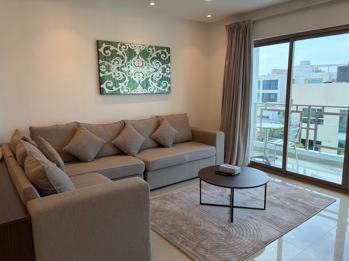 A warm contemporary 2 bedroom apartment in a family oriented building with welcoming staff, housekeeping service and 24 hours security & reception service. Children & infant friendly. A 3 min walk will take you directly to international cafes, restaurants, 24 hours supermarkets, paddle court and more when you stay at this centrally-located place at the heart (Busaiteen). 5 min drive to The Avenues -10 min drive to the airport - 10 min drive to the heart of Manama.