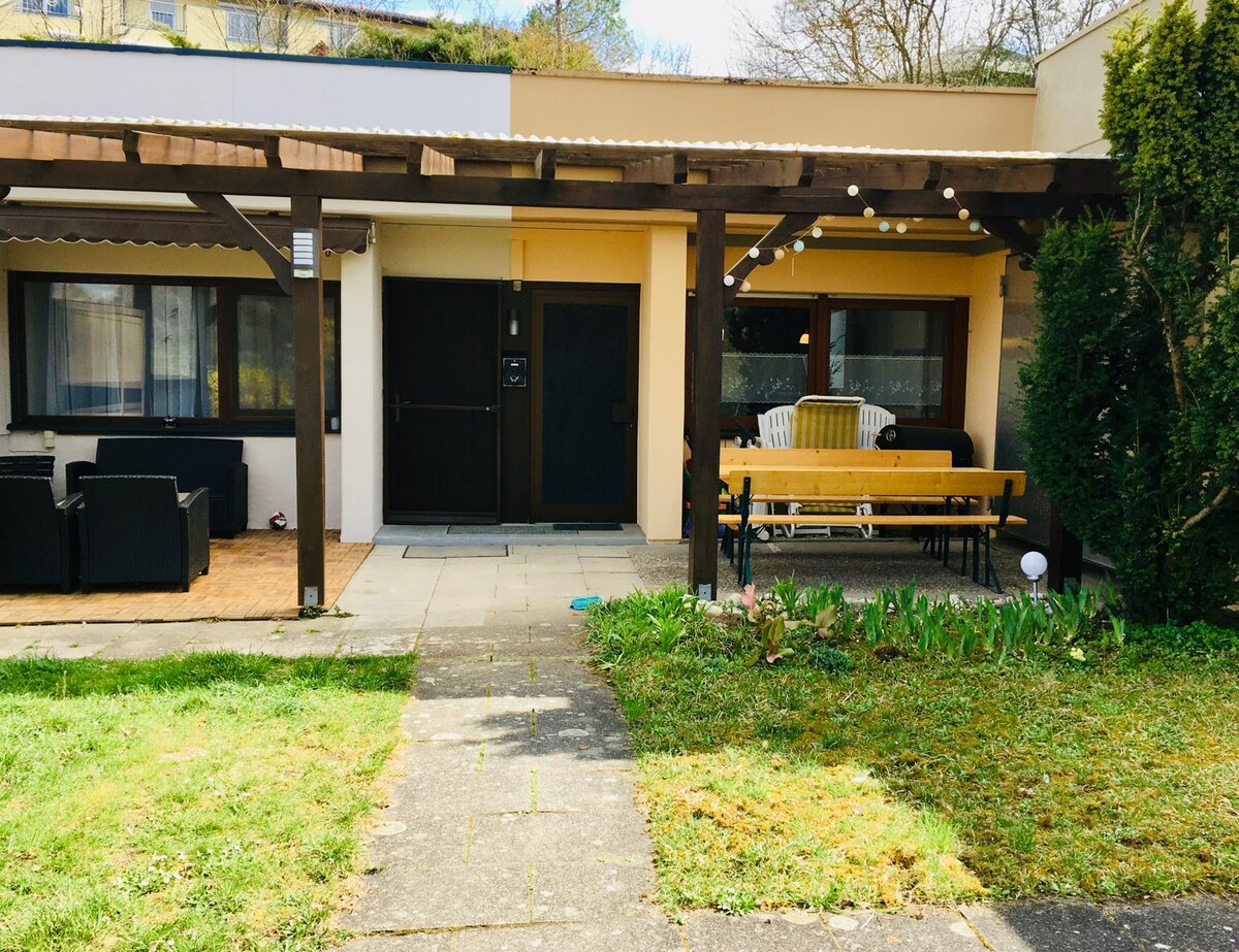 Welcome to Sinsheim! We want you to feel good A lovingly furnished, bright apartment with a well-equipped kitchen awaits you. The terrace is connected to the beautifully landscaped garden. The apartment is 54 square meters + terrace 12 square meters, and a parking space. It is located in the OT-Steinsfurt. The proximity to the museum, stadium and Palmenbad allows you to leave the car in your own parking space. The bus station is less than 100 m away, the train station about 350 m
