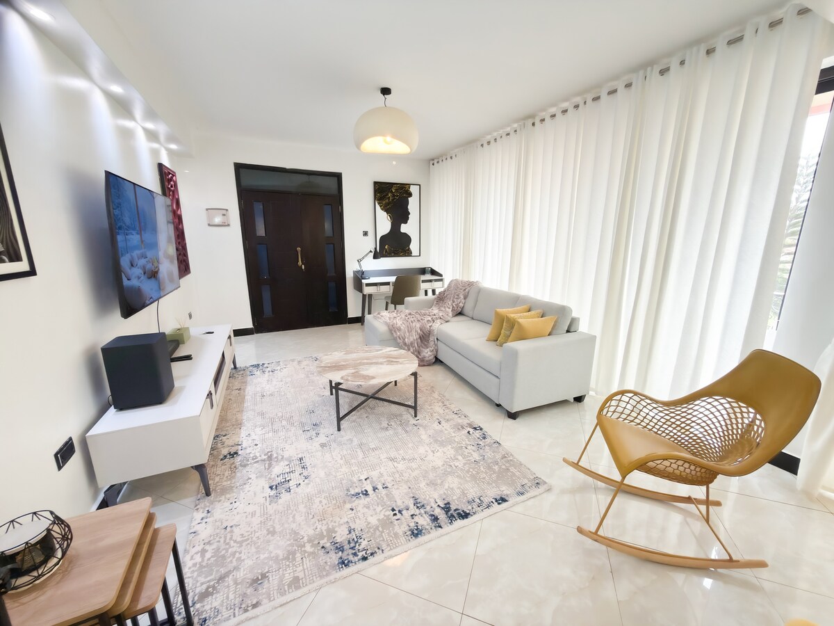 A beautiful two bedroom ground floor apartment that is conducive to host families and friends. Located in Naalya Estate, a few minutes drive to the northern bypass connection leading you to the Airport via Express Highway and close to Acacia Mall, nice restaurants & bars nearby. There are also a number of alternative routes to the city center. The amenities are; - All kitchen appliances eg. Rice cooker, blender, coffee machine - Fast Speed WI-FI - 55inch Samsung smart tv - Washing Machine