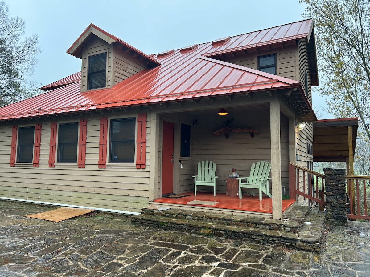 Make some memories at this family-friendly mountaintop cabin south of Fayetteville. This unique cabin is located on 50 acres that offer a million-dollar view of the Boston Mountains. Enjoy fishing in the large pond with the fishing poles, tackle, and enjoy the challenge of a scavenger hunt along the 1/2 mile-long hiking trail! In the evening, enjoy the cliffside firepit nestled next to the peaceful waterfall! 11-minute drive to Razorback Stadium and 5 minutes from the interstate!