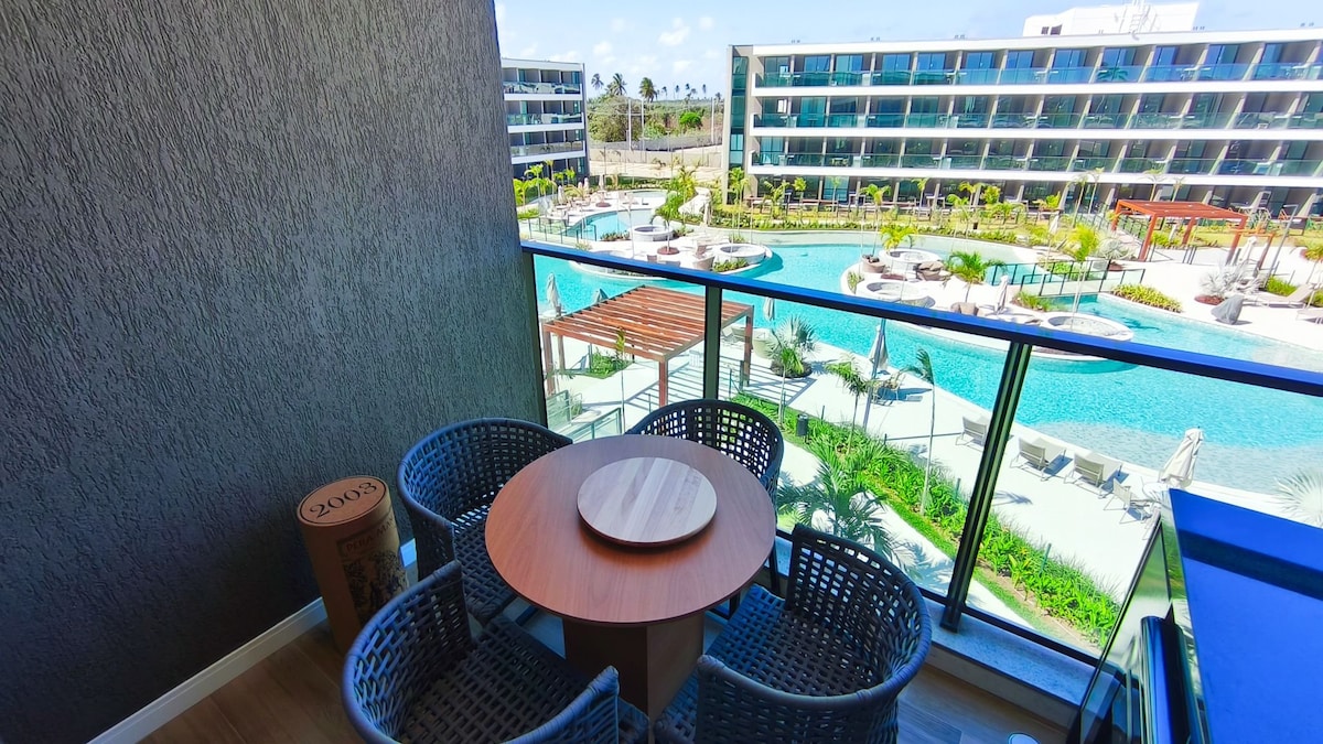Hello! Our Flat is located in the Beach Class Muro Alto Resort, which is on the seafront and has one of the largest swimming pools in the Americas, measuring 3,200 square meters, 2 restaurants, a spa, a convenience store, a laundry, etc. The Flat has 2 bedrooms and comfortably accommodates 6 people, 2 full beds plus 1 sofa bed (full), all rooms have air-conditioning and 4K TVs with free streaming, a balcony, an equipped kitchen and a dining table. Muro Alto Beach is one of the most beautiful in Brazil.