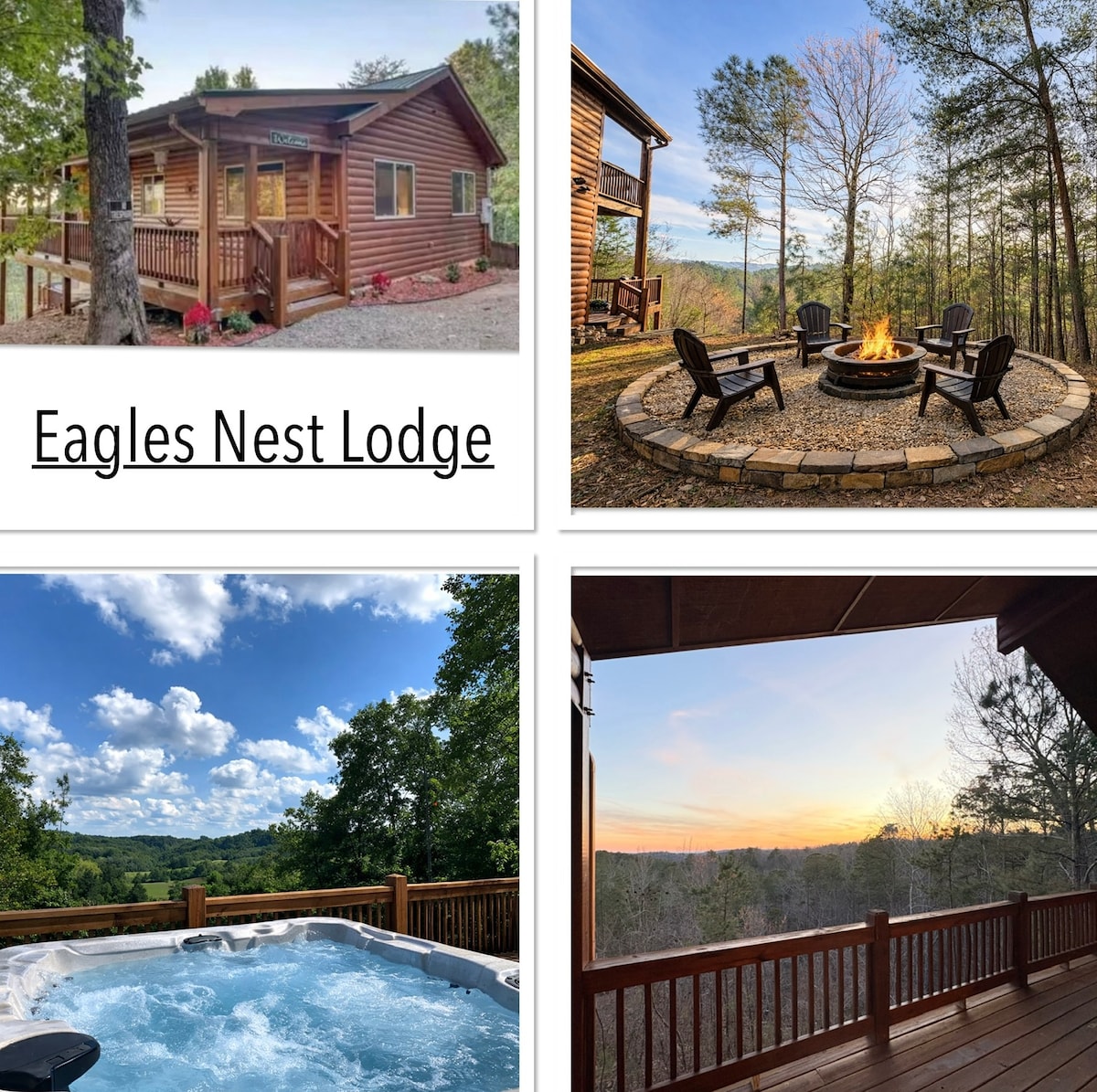 This modern luxury cabin in GA Mountains of Ellijay has a very unique design with you our guests in mind. -kickback, relax to Stunning Sunrise & Sunset all while soaking in the Hot Tub. - Caters Lake w/Boat ramp, picnic area, and trails are 5 min left of main gate - Paid Boat Parking @ boat ramp - Fire Pit w/ lighter and fire staters -Gas Grill w/ Backup Propane Tank - COVERED LOWER DECK - Smoking area, Darts, Gathering area -Hammock -Rocking Chair -Uber Eats Delivery -InstaCart -Dining