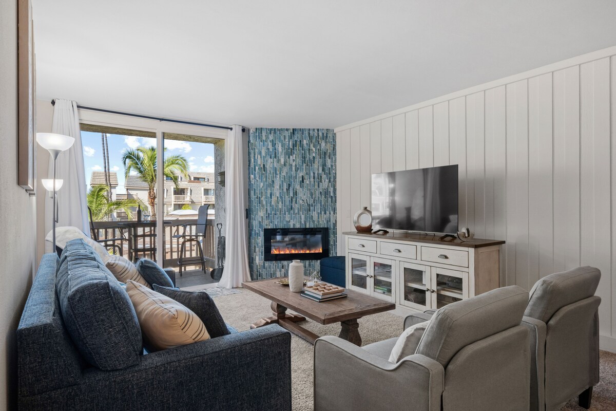 Patio on the Pacific has beautiful ocean views from the living room, master bedroom, and balcony. On a nice day in Oceanside, you can enjoy the sailboats going by on the Pacific from the couch! To relax and recharge, use the buildings pools and spas or enjoy the 5 min walk to the beach + strand. Enjoy working here with 200mbps Internet and a dedicated desk in the bedroom. Our condo is a corner unit on the top floor (accessible via elevator) of building G in the North Coast Village.