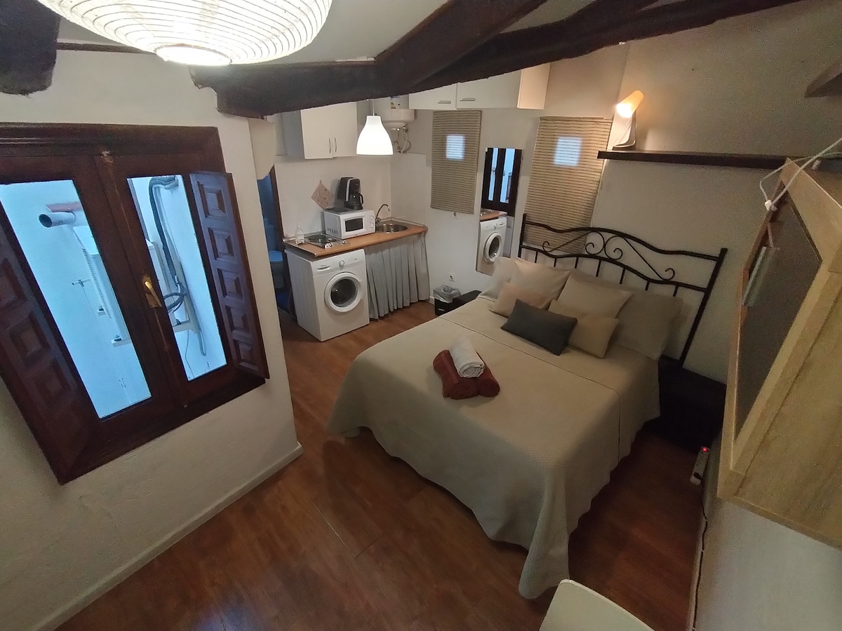 Cosy, fully equipped studio in a traditional early 20th-century Madrid corrala. For NOT EXCLUSIVELY TOURISTIC temporary stays only – PLEASE READ THE DESCRIPTION BEFORE BOOKING. Superb central location, near Reina Sofía and Prado. Quiet area with shops and restaurants. Just 4 min on foot to Estación del Arte and Antón Martín (metro stations), 10 min to Atocha Station (direct airport link), and close to bus stops serving the whole city.