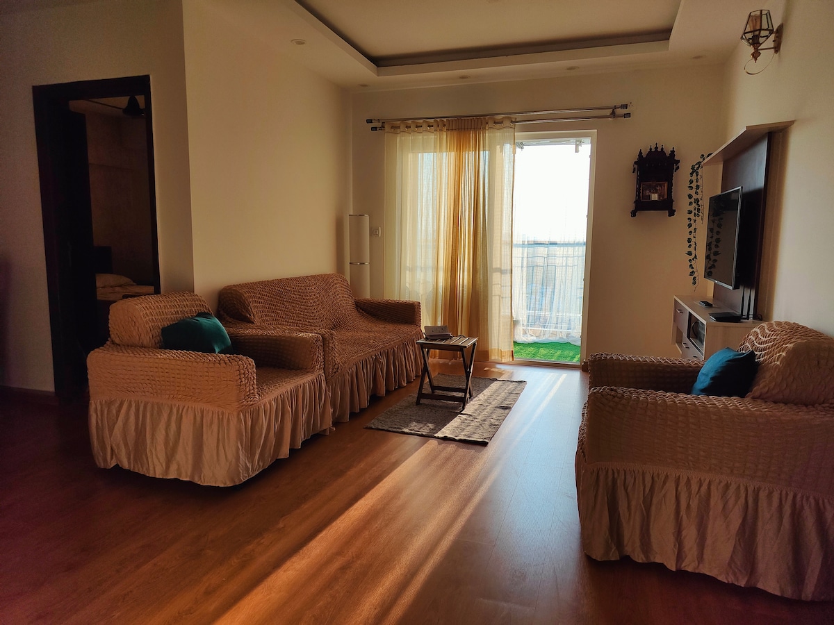 Bring the whole family to this great place with lots of room for fun. • Fully furnished 1 BHK apartment • Comfortable queen-size bed and clean linens • Attached bathroom with hot water • Living area with sofa and TV • Kitchen with basic utensils, stove, and fridge • High-speed Wi-Fi (100 Mbps) • Washing machine access • 24/7 water and power backup • Cleaning service available