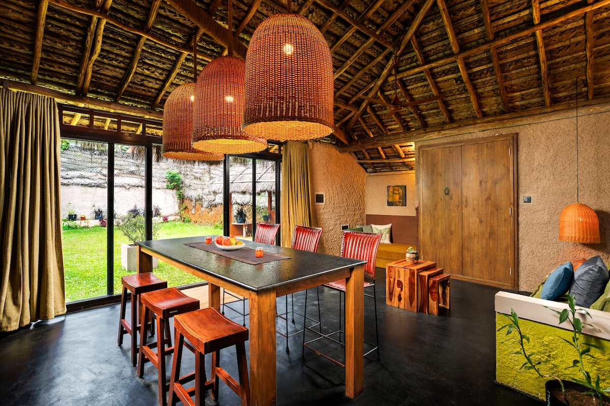 Kudisai is a rustic, eco-friendly villa and private art gallery in the scenic valley of Marayoor, near Munnar. Built with natural materials and filled with artistic interiors, it blends simplicity with comfort. Enjoy a private thatched-roof retreat with serene views, a peaceful lawn, and curated local meals cooked on the earthen stove. Breakfast and dinner are included. Ideal for couples, families, artists, nature lovers—and pets—seeking to reconnect with nature.