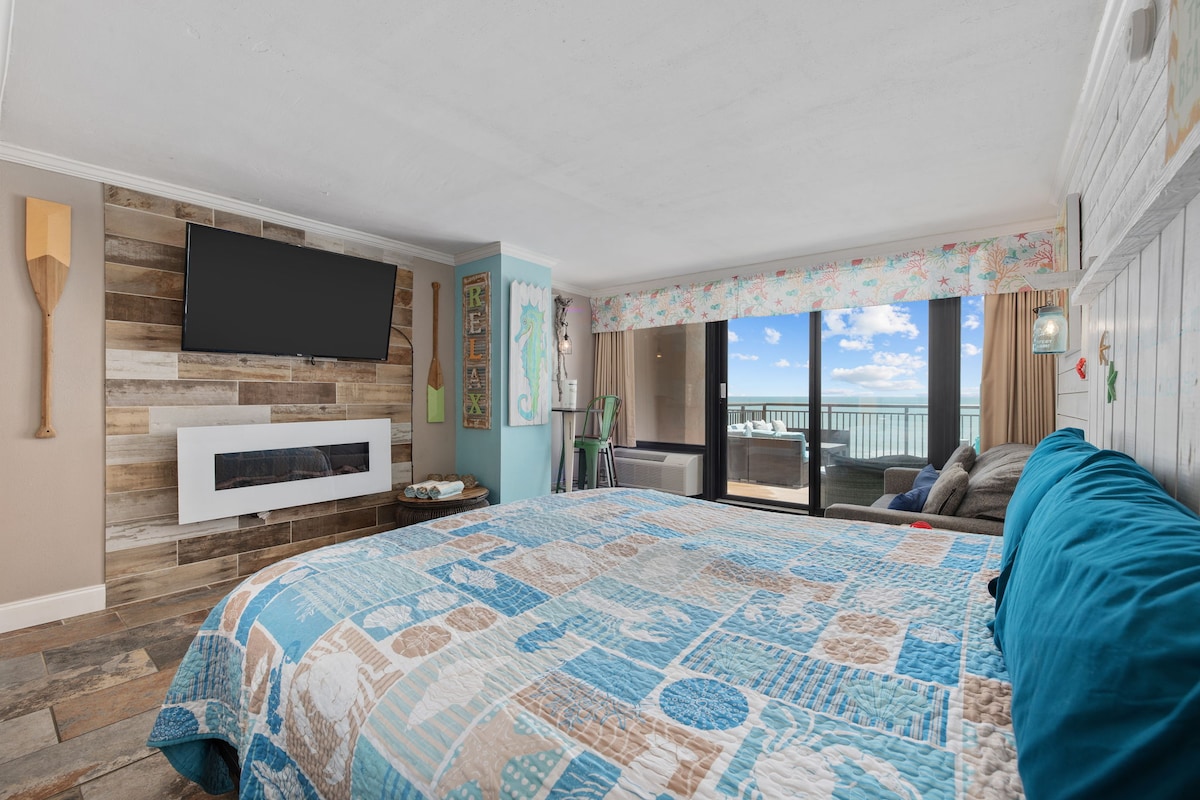 Incredible ocean front huge sun deck balcony (350 sq ft) + king studio w/ living space & full kitchen (300 sq ft) = tons of space. Sleeps 4 (probably a tight fit for 4 adults) Close to all attractions, in a family-oriented section of MB. Comfy king bed and queen sleeper Fully stocked kitchen w/ full-sized appliances. High quality linen & towels Keyless entry *See "The Space" below* *Please consider Travel Insurance when booking* *NO pets or smoking is allowed @ resort. Age requirement 21+