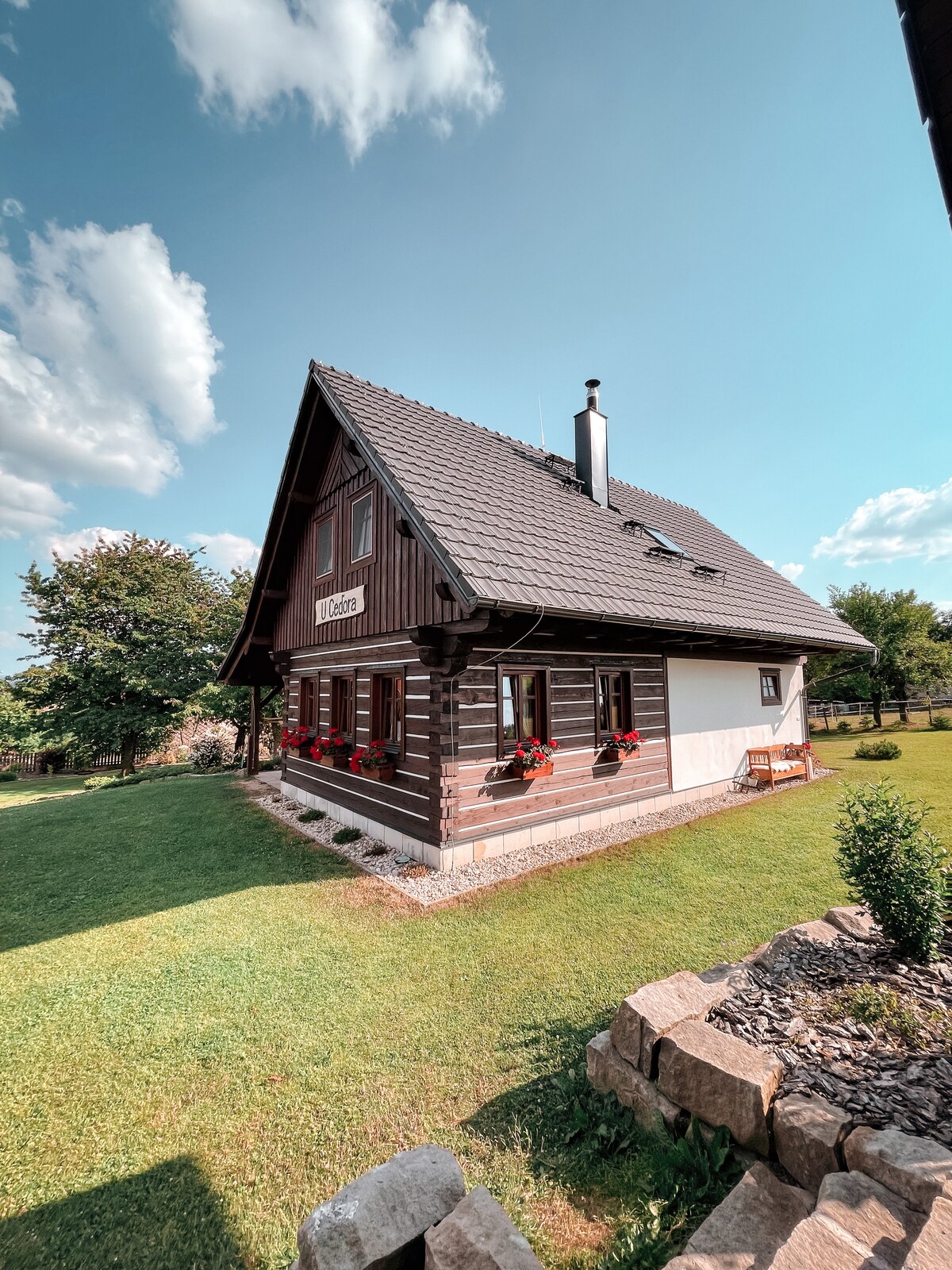The luxury timbered cottage is located in a quiet part of the Adršpašsko-Teplické skály nature park. The maximum capacity is 20 people. There are two separate apartments for the accommodation, each with its own entrance. The apartments have plenty of bedrooms, common areas and bathrooms, a fully equipped kitchen (kettle, fridge, freezer, hob with oven, dishwasher, microwave and coffee machine) Outdoor seating, large parking lot, garden with children's playground, Wi-Fi, TV, underfloor heating.