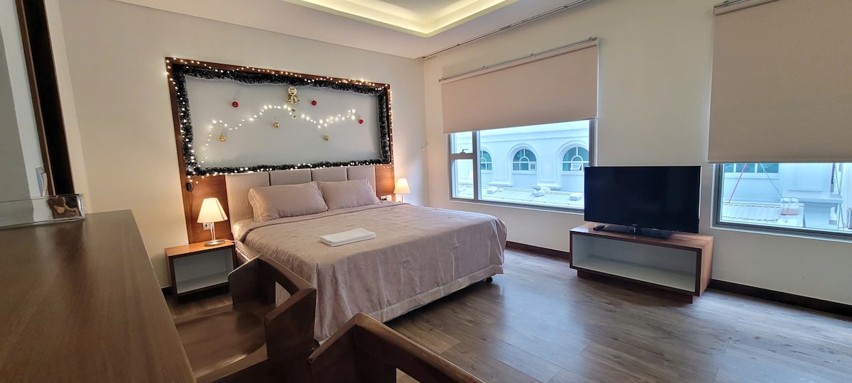 Cozy room with huge windows and views of a luxury hotel - 150m from My Khe beach - The beach voted by Forbes as the most attractive on the planet - 2km from Dragon Bridge, Han River Bridge, located in the busiest tourist area of Da Nang - An Thuong, so it is close to famous entertainment and dining spots, extremely convenient for you to explore Da Nang city - Located on a street far from the main road, so it is very quiet for you to sleep well - Outdoor swimming pool and gym on the top floor