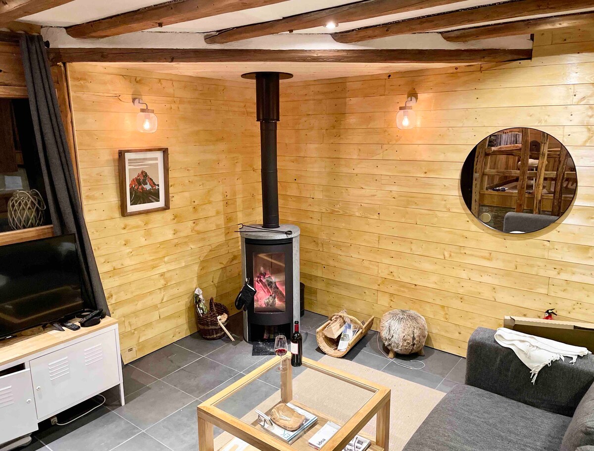 Charming Old Wood and Stone Chalet view Mont Blanc