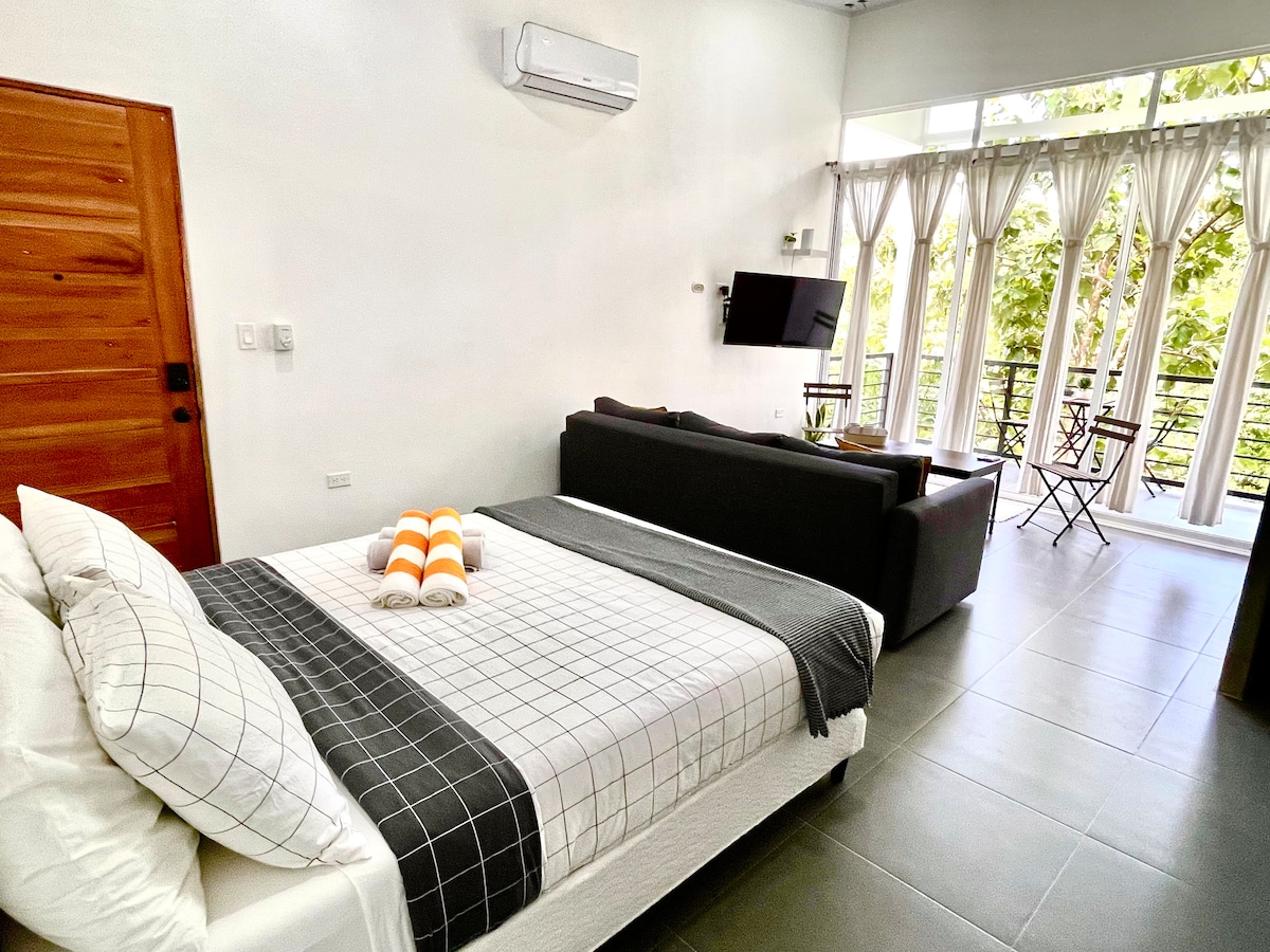 Casa Tucan is a stunning, modern, and cozy loft located in the heart of Manuel Antonio, less than 10 minutes away from the National Park. This air-conditioned loft features a queen bed and a sofa bed, comfortably accommodating up to 4 guests. The kitchenette have all the essentials to prepare your meals. From the balcony, you can enjoy sightings of toucans, monkeys, macaws, and a variety of other local wildlife. Nearby you can find numerous other attractions to enhance your stay.