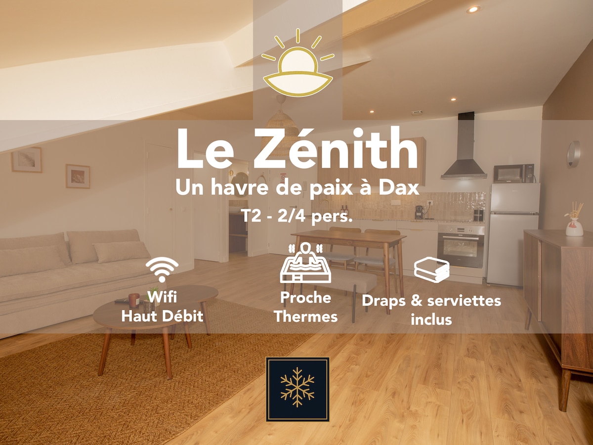 Looking for a recent apartment to discover Dax, in a clean and quiet environment with modern decor, quality services, a listening team, a simple and quick self check-in? Look no further, Le Zénith is perfect for you! ★ Privileged location in the heart of Dax ★ Proximity to famous thermal resorts Paid street★ parking, free 5 minutes walking ★ Bed linens and towels installed ★ Stay connected: Free fast fiber wifi