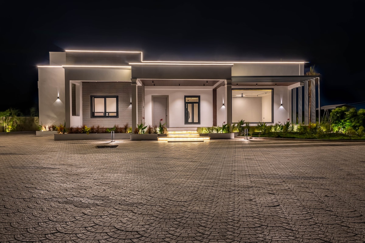 A PRIVATE RESORT STAY EXPERIENCE! Reconnect with nature at this unforgettable escape. A serene and homely 5000 sq ft villa with a swimming pool, lawn and children's play area nestled in an 8 acre mango farm. We take reservations for family stays, parties, events, weekend getaways, movie shootings, etc. Outside food is prohibited.