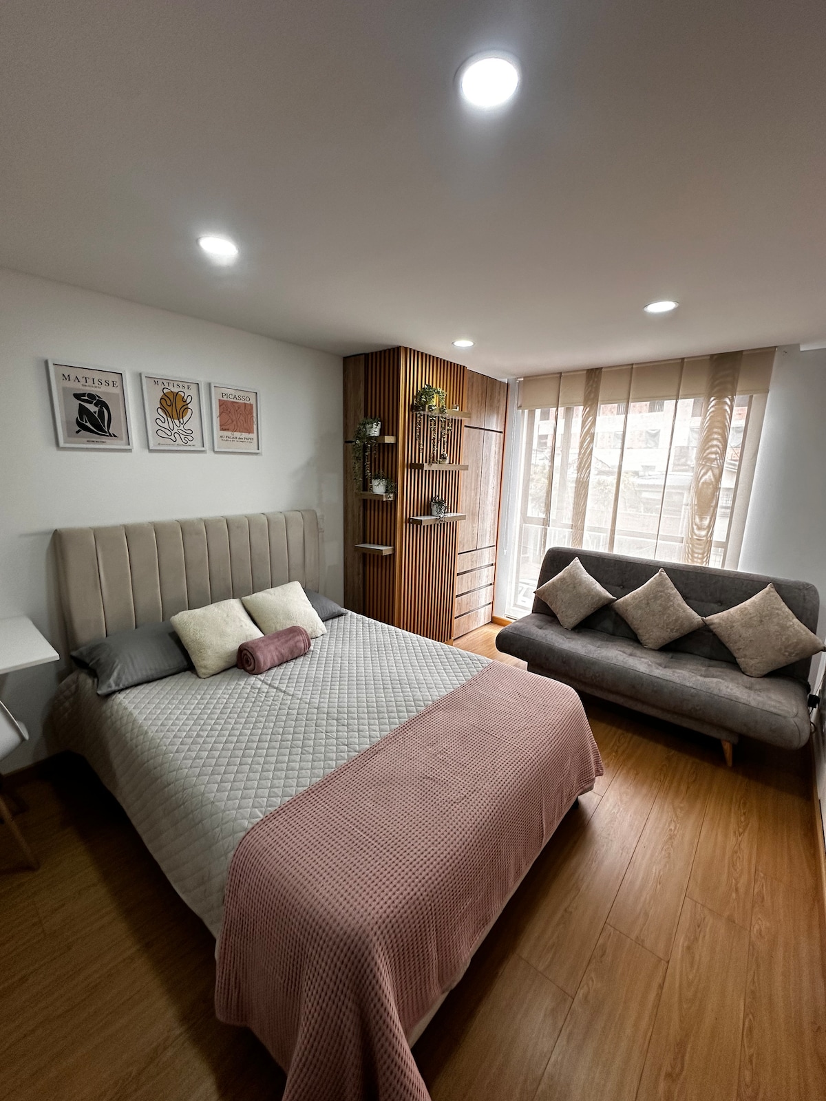 This beautiful studio apartment combines comfort, warmth and strategic location. Perfect for resting while enjoying all that Bogotá has to offer: concerts, sporting events, errands or urban getaways. Minutes from El Campín Stadium, Movistar Arena, the US Embassy, and the airport. This quiet and bright space has a comfortable bed, private bathroom, equipped kitchen, hot water, wifi and TV. Perfect for travelers or couples looking for comfort and a good location.