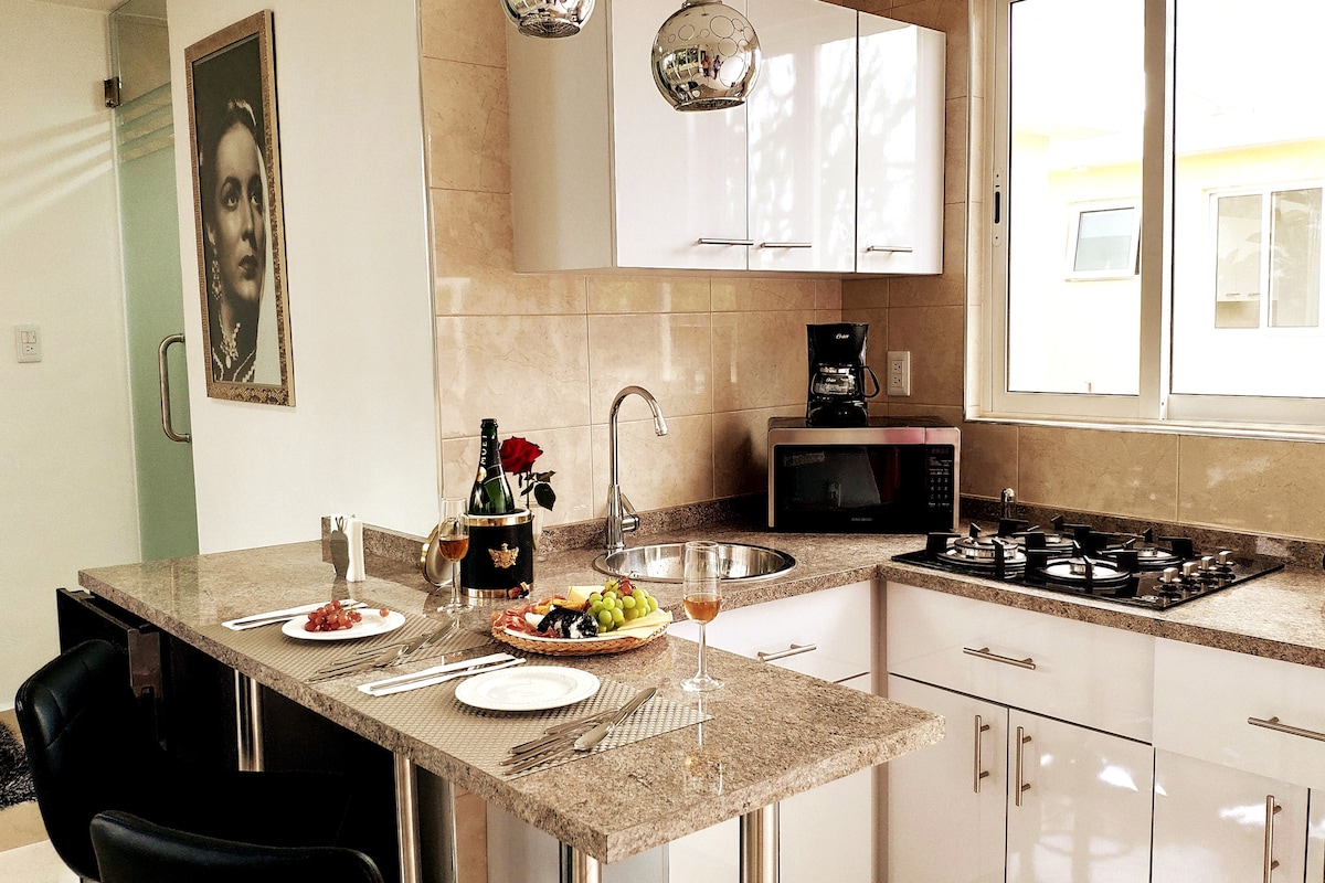 It is a small studio on the third floor (rooftop) independent of the apartment, but with everything you need to have a comfortable stay. It has a minibar and grill, and all the necessary utensils for cooking. A separate bathroom, cable TV, Wi-Fi, and a closet. On one side we have a small and comfortable terrace with Acapulco chairs and little plants to go out for fresh air and relax