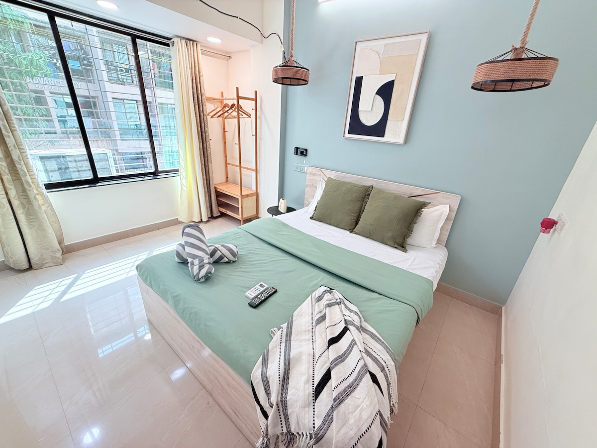 Wake up to rhapsody of chirping birds gentle sea breeze & magnificent sunrise surrounded by lush greenery. Silver BEACH -5 min Walk Aksa BEACH-15 min drive Smart TVs AC Wi-Fi a Bath tub. FOR FAMILIES ONLY Spend cozy afternoons in the balcony with a book & a cup of coffee amidst greenery Stroll on the beach , Explore beautiful landscaped gardens Pool & Quaint cafe of luxury apartment complex .Set in peaceful & tropical neighbourhood of Madh Island Zomato Swiggy & Blinkit delivers.