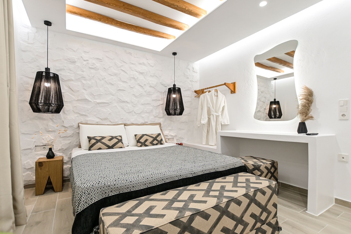 Decorated in light shades and elegantly furnished our beautifully decorated Smirida Suite provides well-appointed accommodation, can accommodate up to 2 persons. Meticulous attention to detail ensures that families enjoy and plan their daily schedules in a luxurious homely environment.