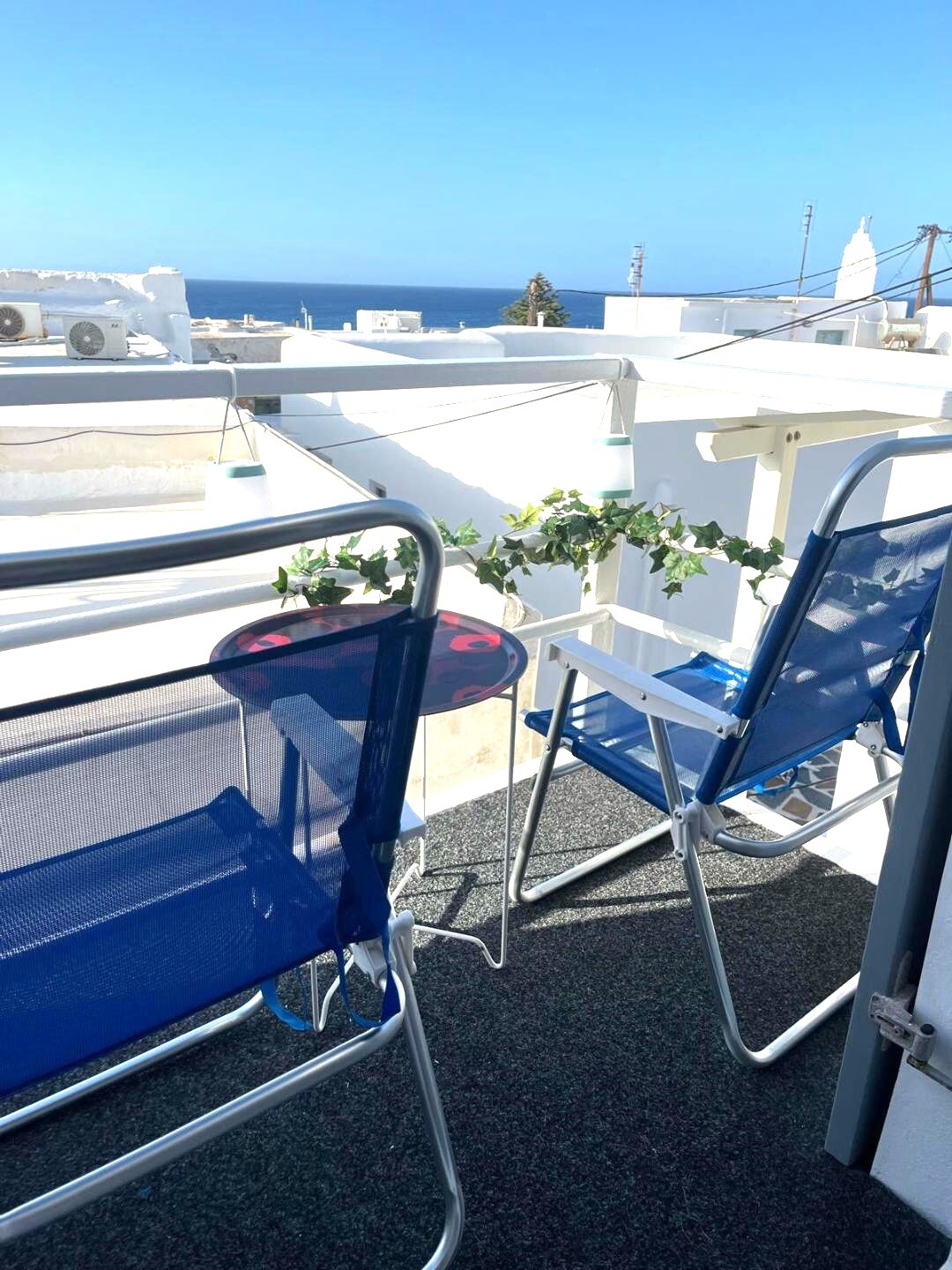 You can enjoy a side sea view and as you can see in the photos it is 15 steps from the sea. 10 meters away there is Sun Kyma café- bar-restaurant, where you can enjoy your meal you want during the day cocktails or breakfast . Next to the rooms you will find FLISVOS watersports club as well as a lovely sandy beach with sunbeds. You will find my place 10-15 minutes walking from the center of Naxos town (Chora) , 10 minutes by car from the port of Chora and 30-40 minutes walking with luggage.
