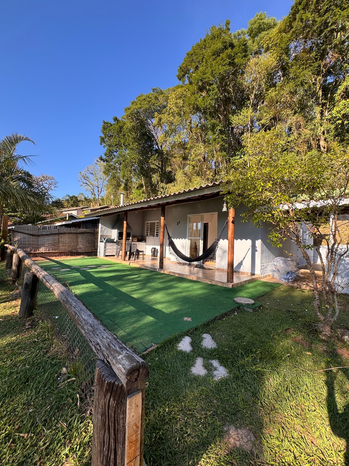 Aproveite o conforto de uma casa tranquila, cheia de charme, ampla e equipada com todas as comodidades! com acesso super fácil e tranquilo. Somos pet friedly e os pets são bem vindos aqui na casa :-) Cozinha planejada com fogão e forno a lenha e churrasqueira, rede para descanso com visão para a área da piscina, lagos e montanhas. Venha desfrutar de um final de semana perfeito com a família ou amigos.