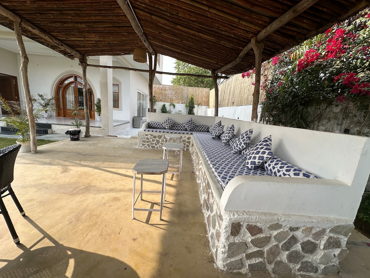 ◆Luxurious 3-BHK villa located in Mordha village ◆Nearby attractions: Neemrana Fort – 34 km, Alwar Forts – 60 km ◆Stylish living room with elegant interiors ◆Private pool for a refreshing experience ◆Lush green garden perfect for relaxation ◆Sunset dinner by the poolside for a magical evening ◆Floating basket meals for a unique touch ◆Sophisticated blend of modern comfort & aesthetics ◆Ideal for a peaceful yet indulgent getaway