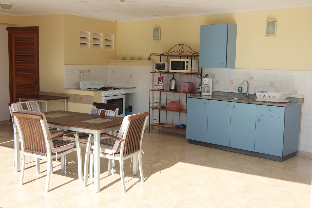 We offer 2 ocean view apartments, apartment A is first of them. Just few steps from beach with the best snorkeling on Aruba. Two minutes by walk to long sandy beach Arashi. Very safe and peacefull place near by hotels area, restaurants, casinos and shopes. . Youโll love my place because of Amaizing location, safe and peacefull area, helpfull people. My place is good for couples, solo adventurers, and big groups.