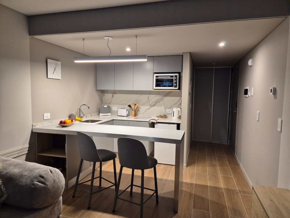 Disfrutá de una estadía cómoda y elegante en un monoambiente completamente nuevo, ubicado en pleno centro de Neuquén. El departamento combina diseño moderno, confort y practicidad, con mobiliario de alta calidad y detalles pensados para que te sientas como en casa. Calefacción por piso radiante WiFi de alta velocidad Smart TV Cafetera, pava eléctrica y tostadora nuevas. Aire acondicionado split