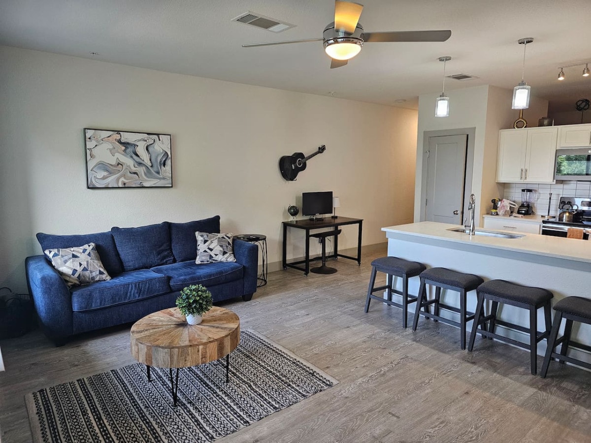 Escape to this stunning luxury apartment just a short stroll from the iconic Gruene Hall. Perfectly situated in the heart of historic Gruene, this beautifully appointed 1-bedroom apartment offers everything you need for a memorable getaway. Traveling with a group? We manage multiple units in this complex and may be able to accommodate 8-16 person groupsadults. Message us for multi-unit availability and booking! 🏡 About the Space: Spacious Living: Enjoy a cozy living area, modern furnishings