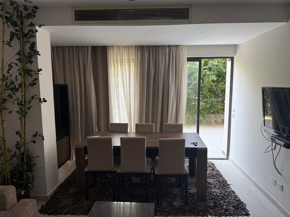 This modern and spacious apartment is located in Kattameya PlazaSodic Compound, a secure and gated community with 24/7 security. You will be minutes away from American University of Cairo, major shopping centers, outdoor malls and restaurants Whether you are a family, a student, or in Cairo for business, you will find everything you need for a comfortable stay Fully furnished Kitchen-Private Garden- Pool Access Minutes to Waterway2