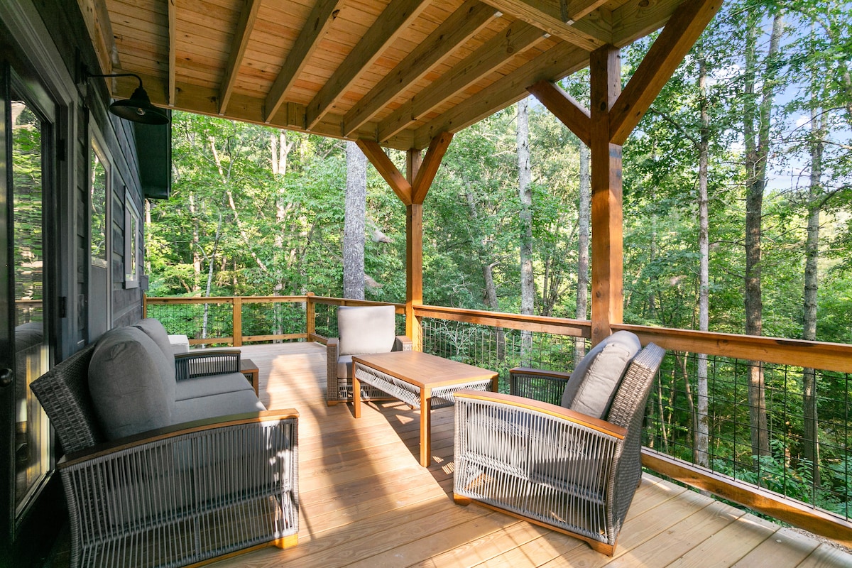Escape to the luxury Cozy Cabin in beautiful Ellijay—perfect for families, couples, or solos looking for a peaceful getaway just minutes from downtown. Relax in the brand-new hot tub on the private deck or enjoy cozy movie nights in the spacious living room. Thoughtfully designed with boutique charm, it features a custom dining table, scenic workstation, and a large bath with new washer/dryer. Experience style, comfort, and seclusion—book your unforgettable mountain stay now!