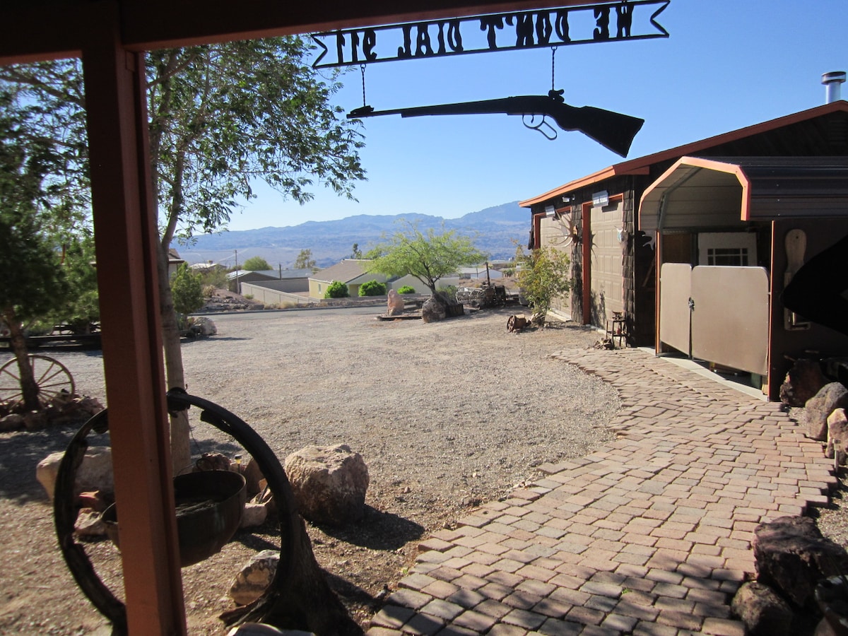 western style ranch living with wild west ghost town in back of property burros roaming the streets,rabbits,quails,very quiet, with fireplace and A/C , side yard with bbq, to relax and have fun, 6 miles to lake,river and casinos.