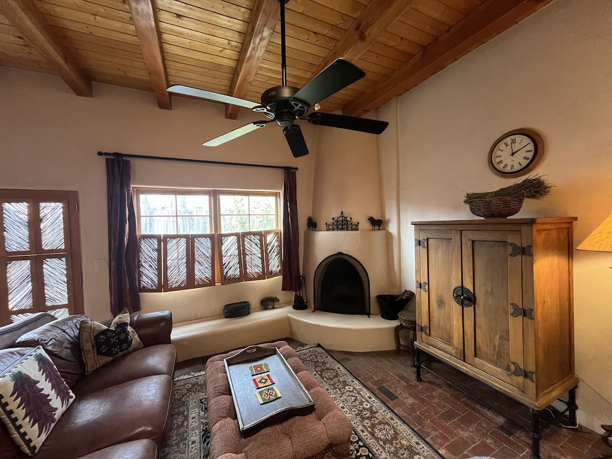 PERFECT SPOT FOR A GETAWAY! A no-smoking, one bedroom retreat-like unit has tons of character. Stroll to the Plaza and restaurants. Enjoy the private patio off the bedroom or the lovely courtyard with calming fountain and many benches. Ideal for reading, thinking or meditation. Many guests have been "working from home with a different view"! One family dog (under 25#) is OK – and you must inquire in advance. The cozy paradise is a combination of the Taos vibe with contemporary touches.