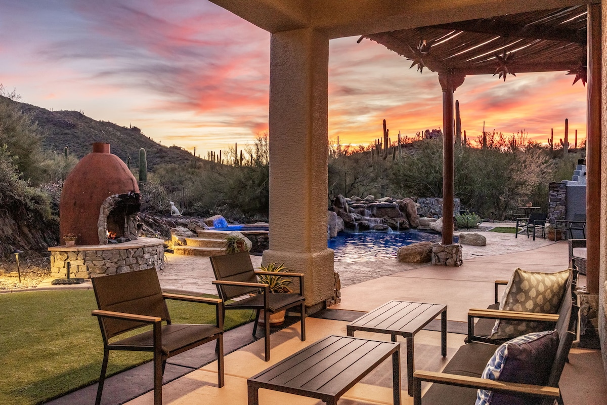 Sleek design and natural beauty blend harmoniously in this expansive 4-bedroom/3-bathroom mansion that provides secluded privacy in rural north Phoenix yet located just minutes away from dining and shopping. The vast outdoor area features exquisite landscaping with lush desert fauna and an attractive resort-style pool and hot tub. In addition, you’ll have access to a built-in modern barbecue and plenty of cozy patio furniture to host an elegant soiree or any other special occasion.
