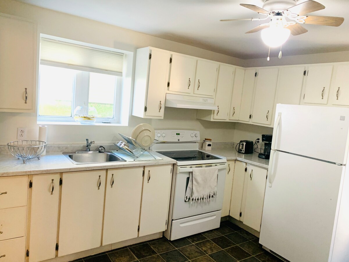 Legge's Sunset Suites is ideally located for longer stays to explore the Baccalieu Coastal Drive. Enjoy spectacular sunsets over the harbour and Shagrock. Stroll to the wharf. See seabirds and fishermen come and go. Maybe see whale. This suite has it all. Upstairs-king bedroom, bathroom w/shower & single jacuzzi bathtub, full kitchen, washer/dryer, and sofa. The spacious downstairs has a bathroom w/shower, queen bedroom, sleeper sectional, propane fireplace, big screen tv. Upgrade - add sauna.