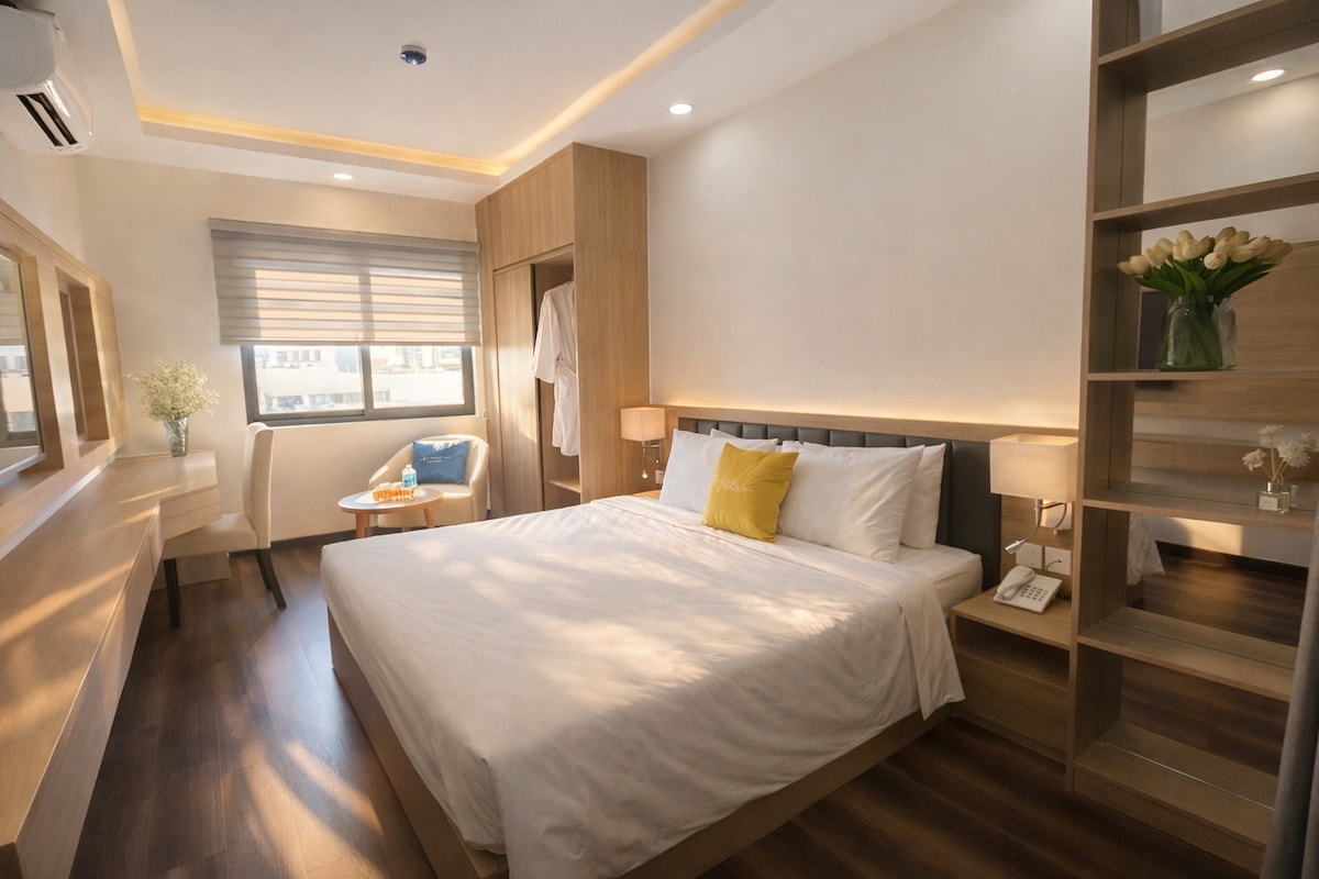 Deluxe City View with Balcony brings to you a great experience with a big comfortable bed and Balcony with city and sea view - Modern funiture - Modern TV with more than 200 chanels - Free wifi - Minibar with good drinks - Hot water - Wash & iron clothes service - Picking up Airport service - Motorbike and car for rent - Tourism service ticket
