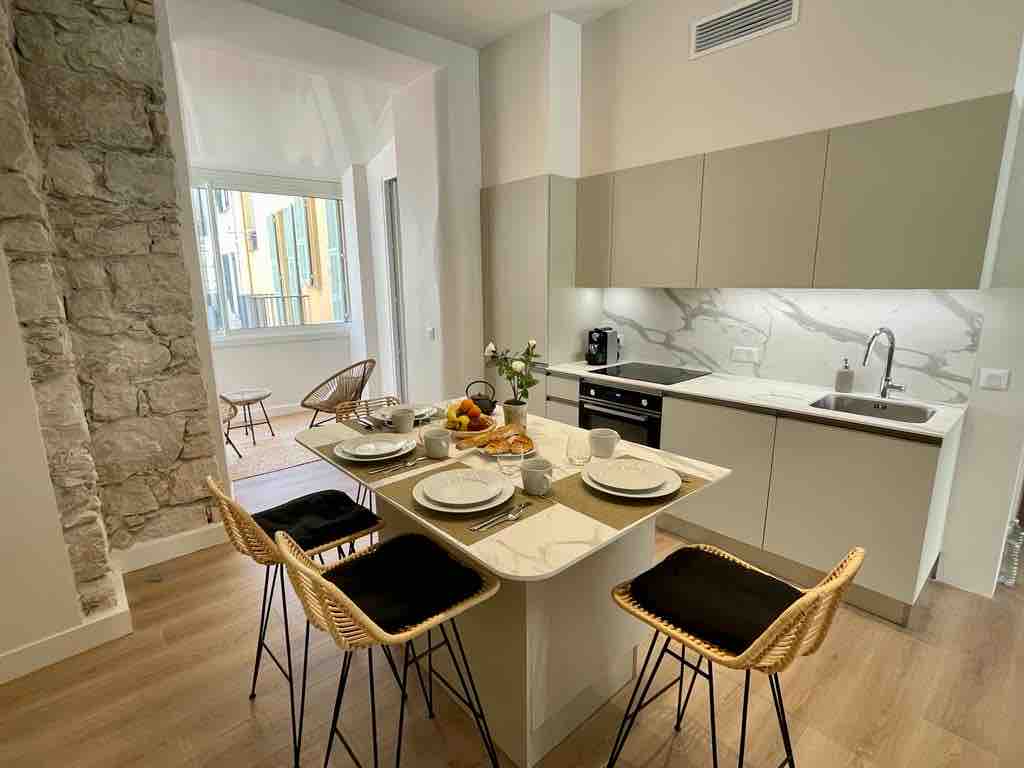 Cet appartement rénové et réalisé dans la pure tradition des bâtiments d’époque du Port de Nice, saura vous ravir par ses volumes, ses matériaux, sa décoration raffinée, entièrement climatisé, avec un espace de vie spacieux, une cuisine conviviale avec îlot central. Un appartement idéal pour un court séjour ou des vacances en famille. L’appartement spécialement conçus pour votre bien être, mais également à un espace veranda vous permettant de prendre petit déjeuner ou apéritif au calme.