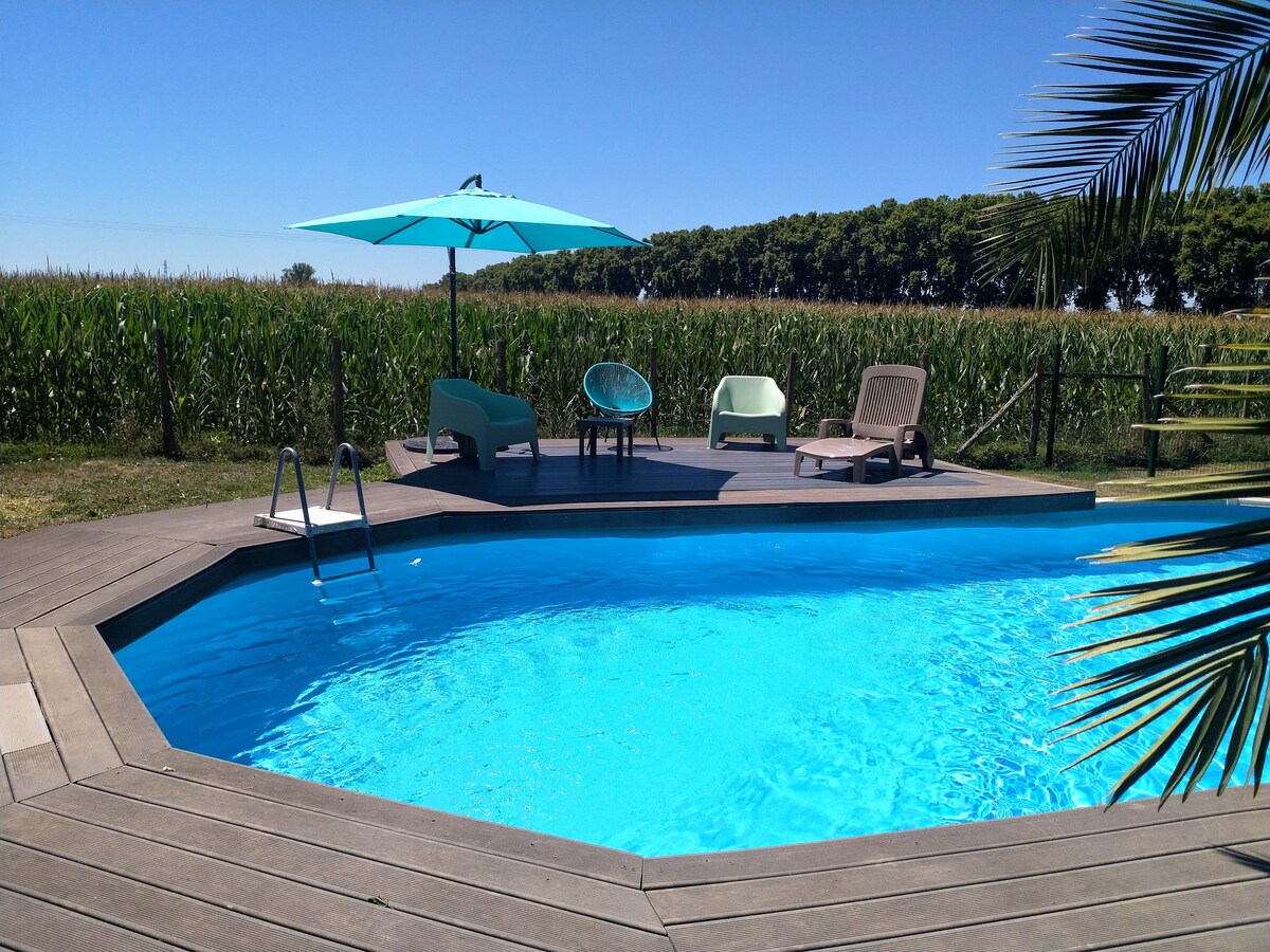 Our peaceful house offers a pleasant stay for the whole family. Relaxing, quiet, everything is in place for a successful stay. You will enjoy the large veranda bathed in the sun all day as well as its intimate swimming pool. The house consists of an equipped kitchen, a master bedroom, a bedroom with a convertible double bed that also has a crib. A sofa bed is also present in the living room. The house is air-conditioned and equipped with laundry facilities.
