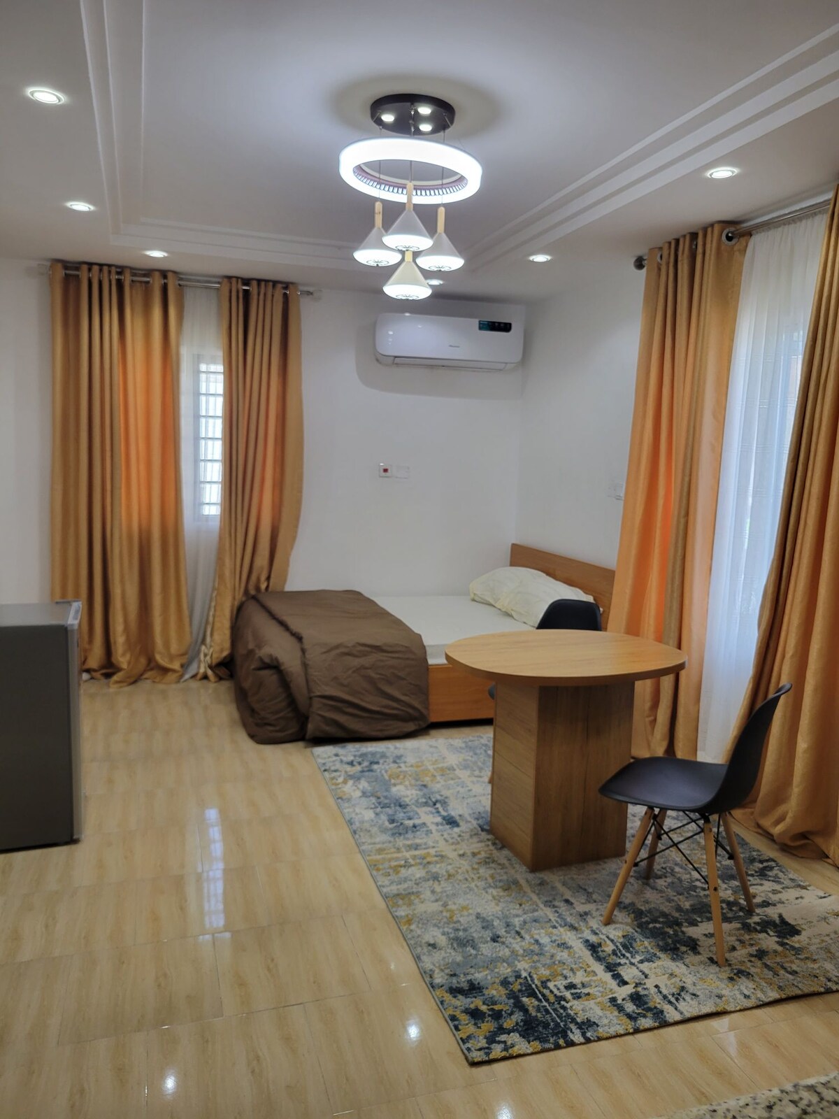 Entire one room apartment for yourself alone in an etate with top-notch amenities: - Proximity to Abuja city center - Next to Gwarinpa - 24/7 Security - Uniform guards & Police presence for peace of mind - 24/7 Electricity (House with solar inverter) - Entire studio apartment with AC - TV with Satellite connection - Fully Equipped Kitchen - Private bathroom - Private compound - Estate Perks - Shopping center, nice for walks Book now for a hassle-free & unforgettable stay in Abuja