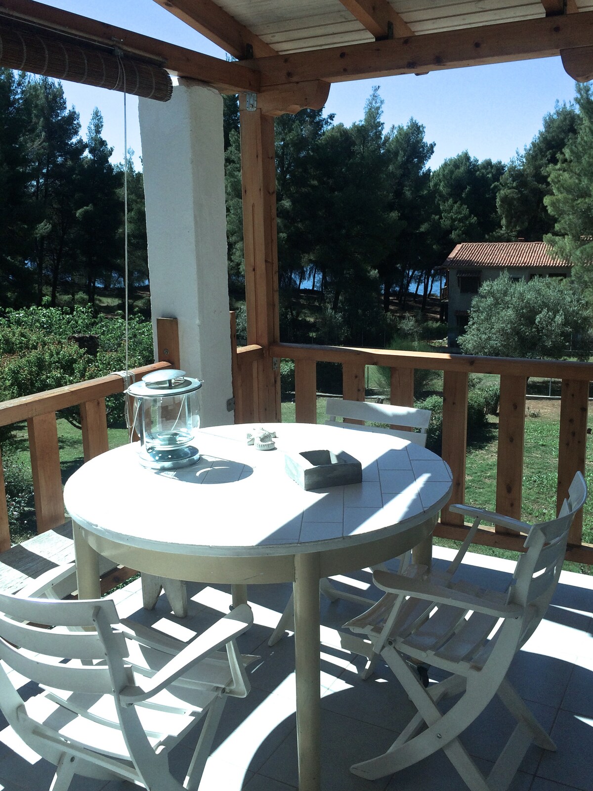 You wake up, the sun is rising behind mount Athos. You enjoy a cup of coffee, while the dolphins jump on the horizon. You walk to the beach and the only thing you can hear is the sea. You cook outside, watching the boats passing by and the seagulls chasing the fish. Now, it's time for drawings and board games. Finally, you have a glass of wine, waiting for the moon to rise behind the hills.