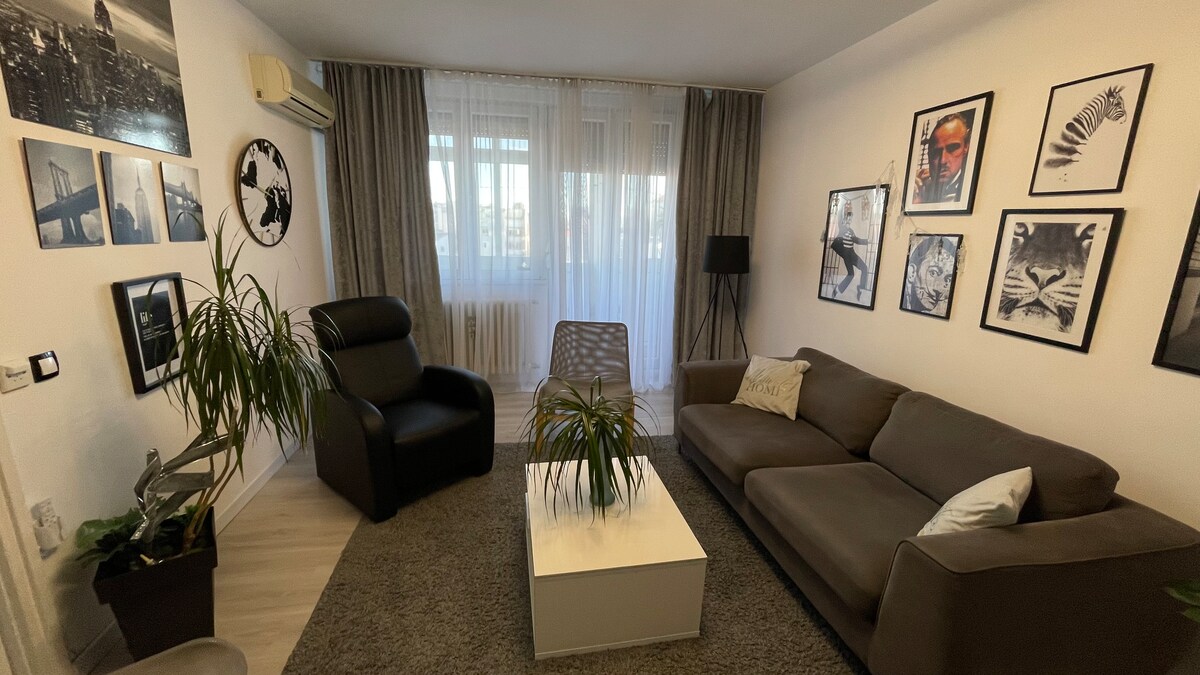 Lovely modern apartment, newly renovated is located in the city center, near Slavija Square and Hilton Hotel. It is on the second floor of a five-storey building. The apartment consists of a spacious room with dining area, kitchen and a bathroom. It is suitable for those who are travelling for business or on holiday. The apartment is oriented towards the beautiful yard with a lot of trees which makes it quiet and good for rest.