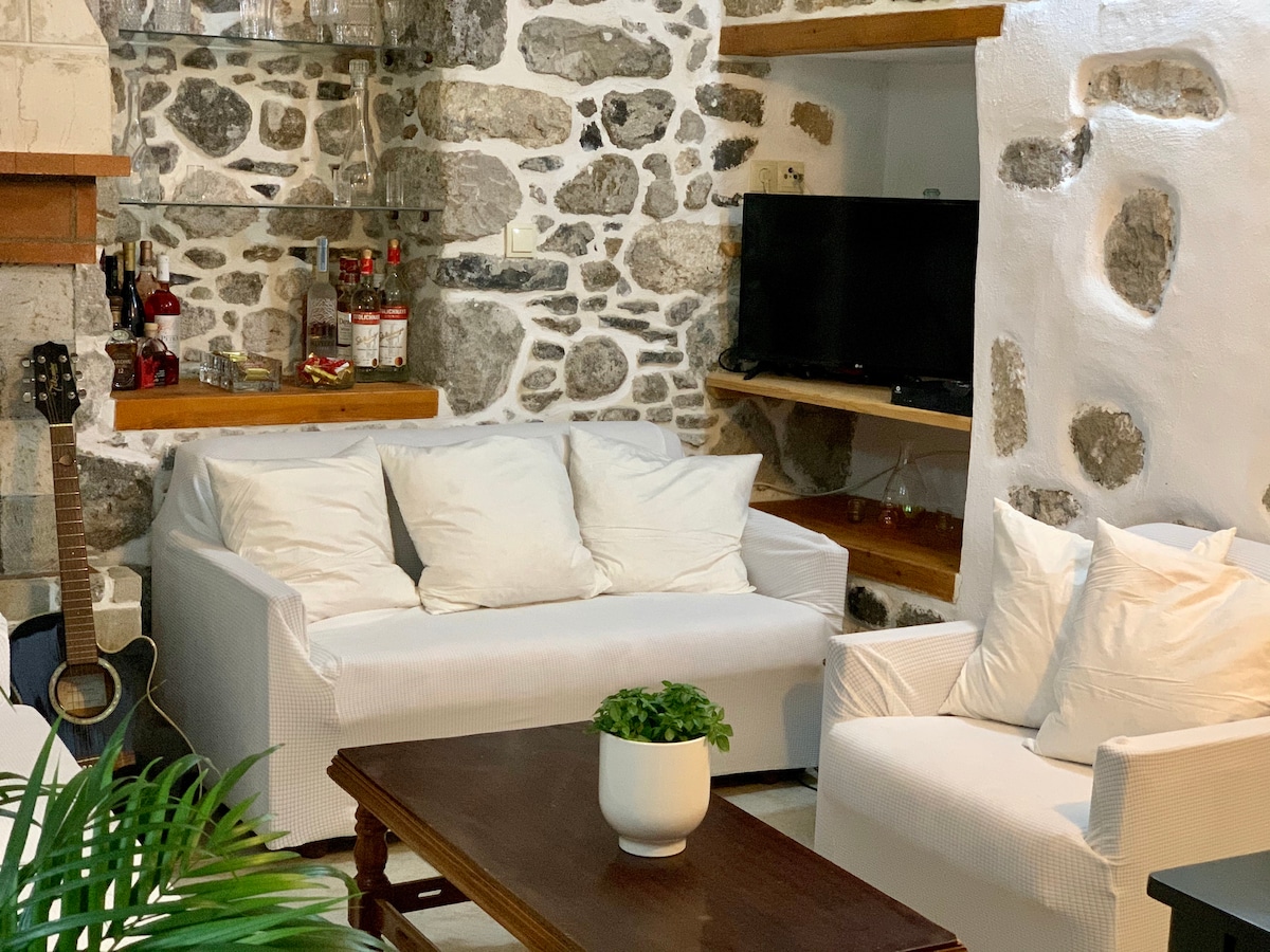 Beautiful two floor, two bedroom, fully renovated and equiped summer house, located in the fantastic no car access village of Nikia, in volcanic Nisiros. The house has two small private gardens and a veranda.