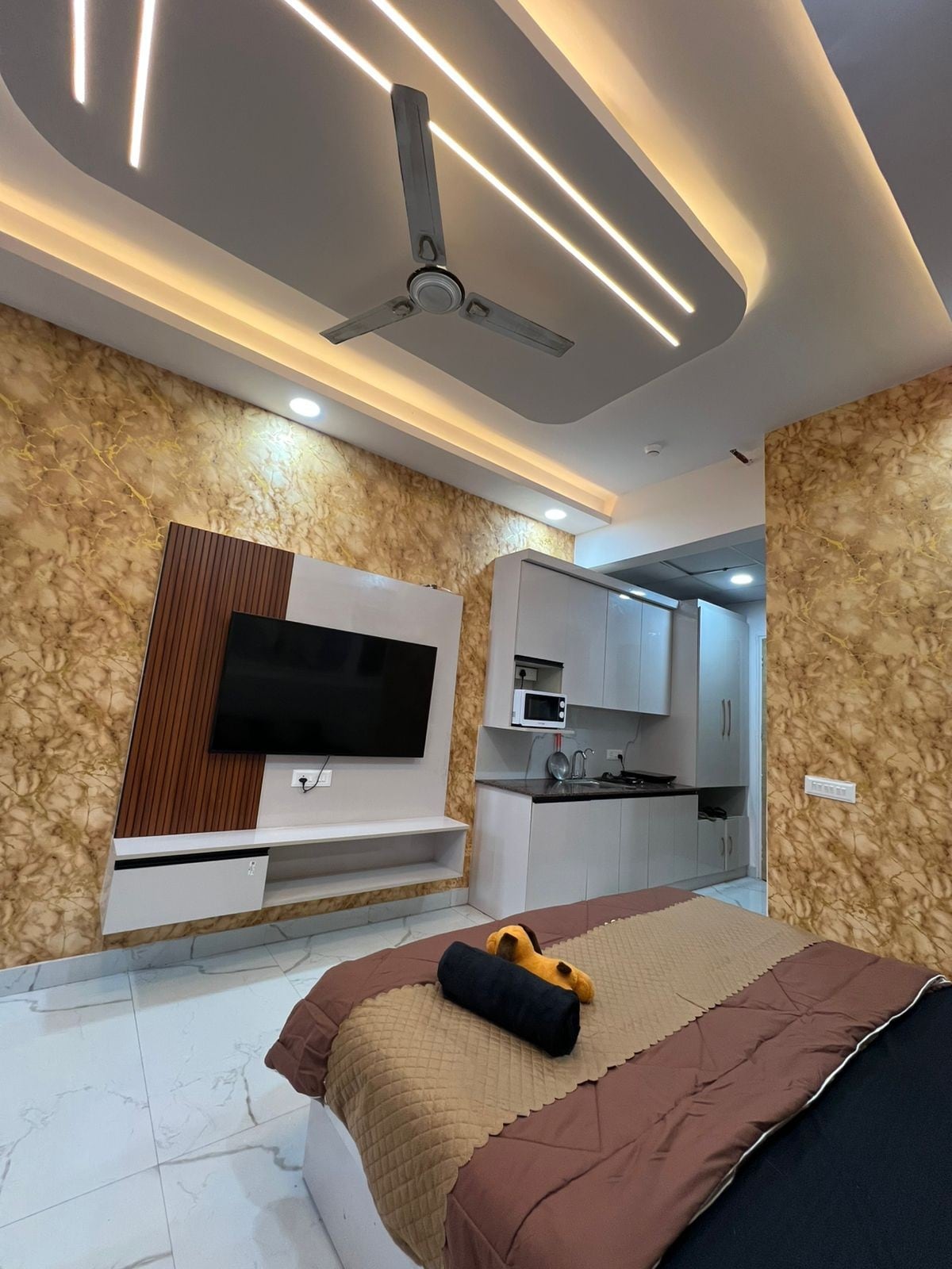 Introducing our exquisite luxury studio apartment: Nestled in the heart of the city, this opulent studio boasts modern elegance and unparalleled comfort. The open-concept design invites you into a spacious haven, bathed in natural light from the large windows that offer breathtaking city views. This apartment is on the 41st floor in one of the tallest sky scraper in Delhi - NCR. The apartment has a river facing view from the balcony!!