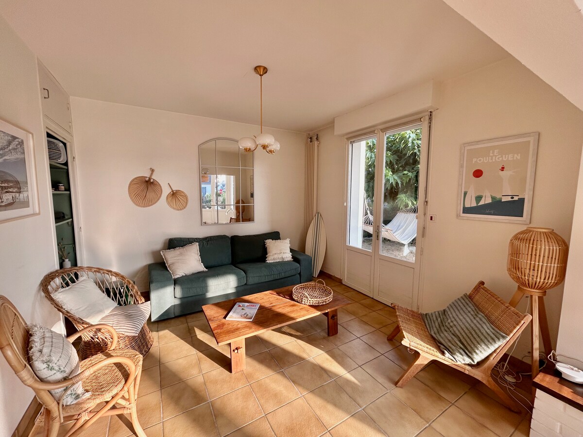 Kick back and relax in this calm, stylish space. new accommodation facing the countryside and 400 m from one of the most beautiful beaches on the Côte de Jade (Plage de Crève Coeur), tastefully decorated on the theme "tropical jungle", located on a street with little traffic. You will spend a peaceful vacation in a pleasant environment. You will be close to the Vélo-Océan bike path for easy access to the village of La Bernerie-en-Retz where there are all the essential shops. Pornic is 5 km away.