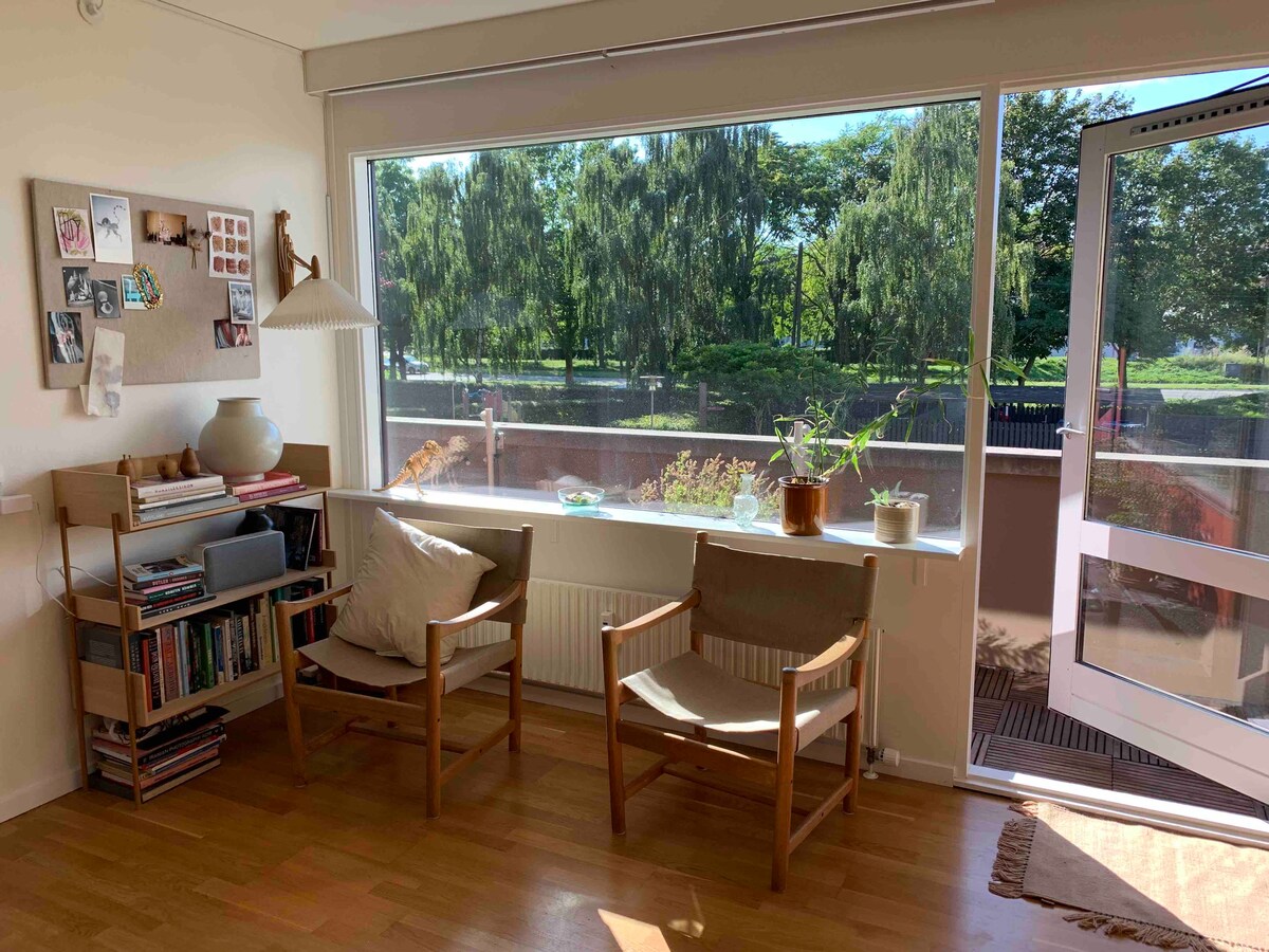 The apartment is located in a charming area with cafes and small design shops and walking distance to two green areas (2 min walking distance). The apartment has brand new kitchen, bathroom and newly renovated living room. In addition, the apartment has access to a charming and cozy backyard. In addition, there is only 5 min walking distance to the metro.