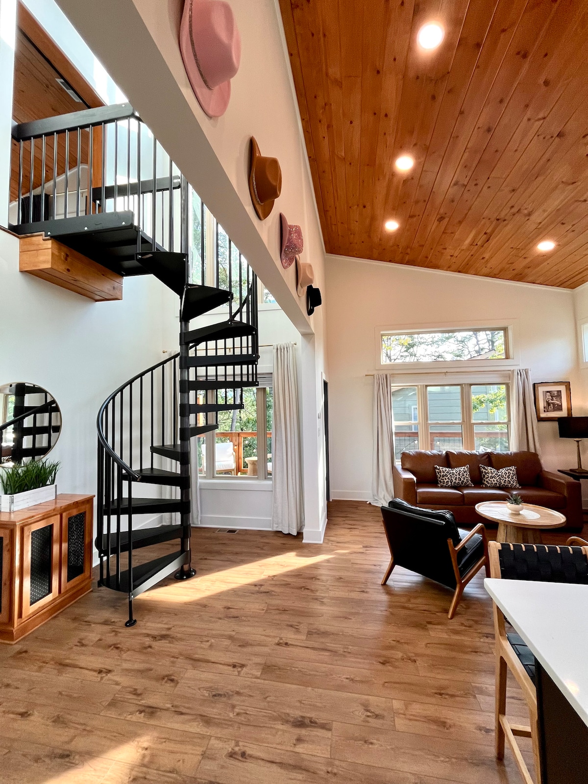 Ruby’s Cliffside is an amazing Studio (but with sleeping for 6 on 2 different levels), 2 Bath vacation home located at the top of Bluff Mountain. The views from this magnificent property are unlike any view in the entire area! Bring your binoculars to see Downtown Knoxville on a clear day from either of the home’s 2 spacious decks. Ruby’s Cliffside offers peace and serenity from the chaos of everyday life. The amenities of this home are just as unique as its architectural design.