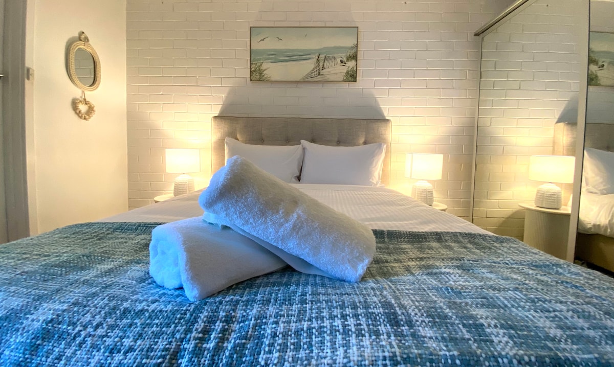 Comfortable queen bed with quality bedding Air conditioning cooling & heating Fully equipped kitchen with microwave, smeg kettle,full size fridge freezer, gas hotplate and oven Flat screen built in wall TV Comfortable 3 seater couch,ottoman and armchair Cute 2 seater dining nook, the perfect spot for that morning coffee while taking in the views of the ocean Renovated bathroom with hairdryer, bath towels, body wash Wifi Top floor NO KIDS