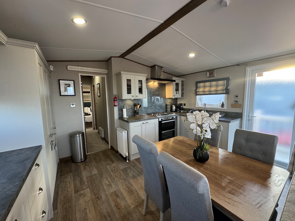 Our modern Chalet sits in the Haven Resort at Seton Sands in a quiet discrete spot, very close to reception and all the amenities. There is a double bedroom with ensuite and two twin bedrooms. We have a large lounge area with comfortable seating for up to 6 people. There is free parking and a local bus service going right to the heart of Edinburgh. Passes can be purchased to use all the facilities of the Haven Resort, including swimming pools, restaurants and bars. Free wifi within the resort.