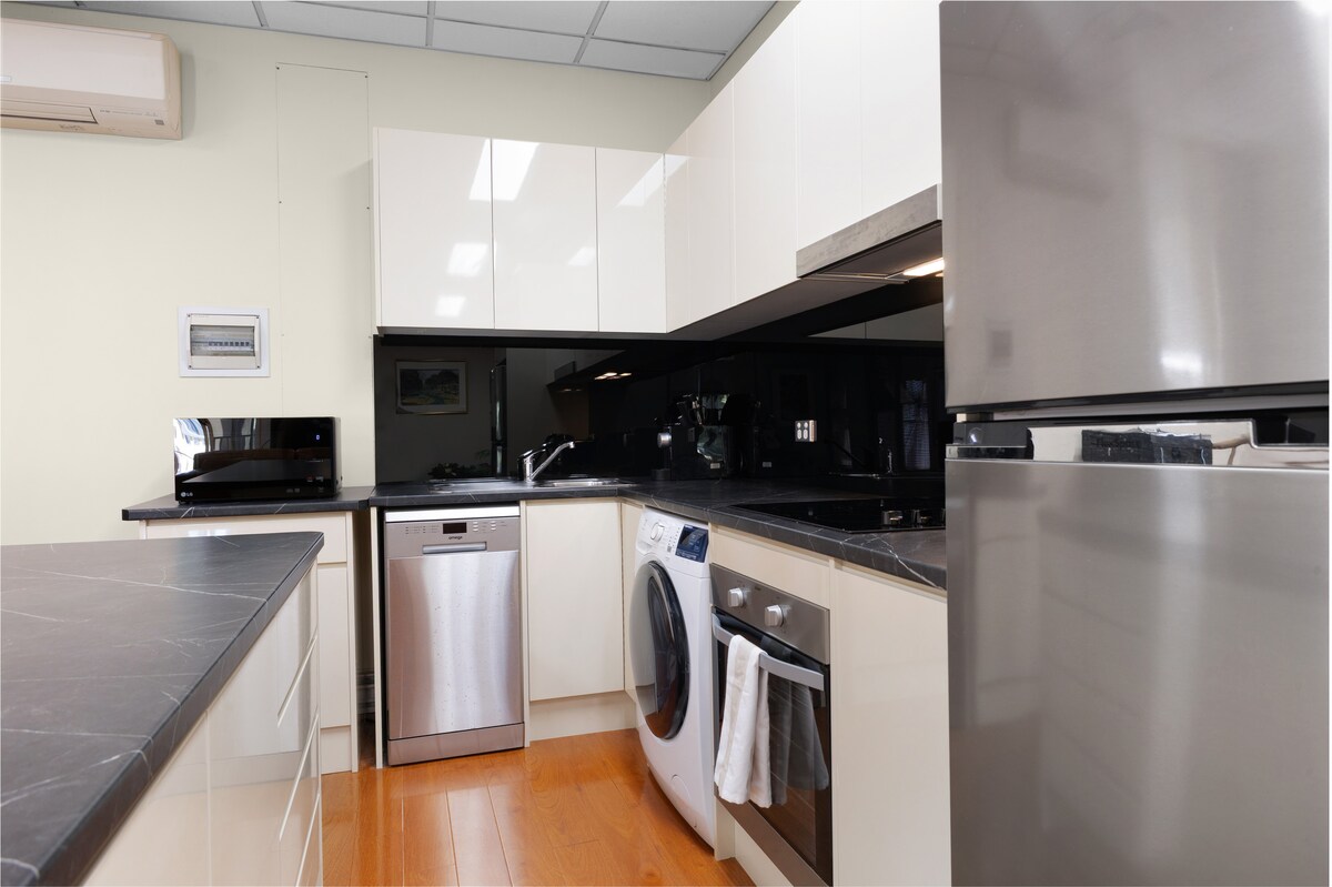 This luxury apartment is fully renovated. Full kitchen, washing machine, air con, wifi and your own patio. The bedroom and bathroom are upstairs with views. The house adjoining the apartment is on a quiet heritage street. Access is via the rear garden of the house. 5 mins walk to North Sydney station, 4 mins to Victoria Cross metro, 4 mins to great restaurants, bars, cafes. Almost 300 five star reviews. A safe and luxurious place to stay. Sorry, not suitable for children or babies.